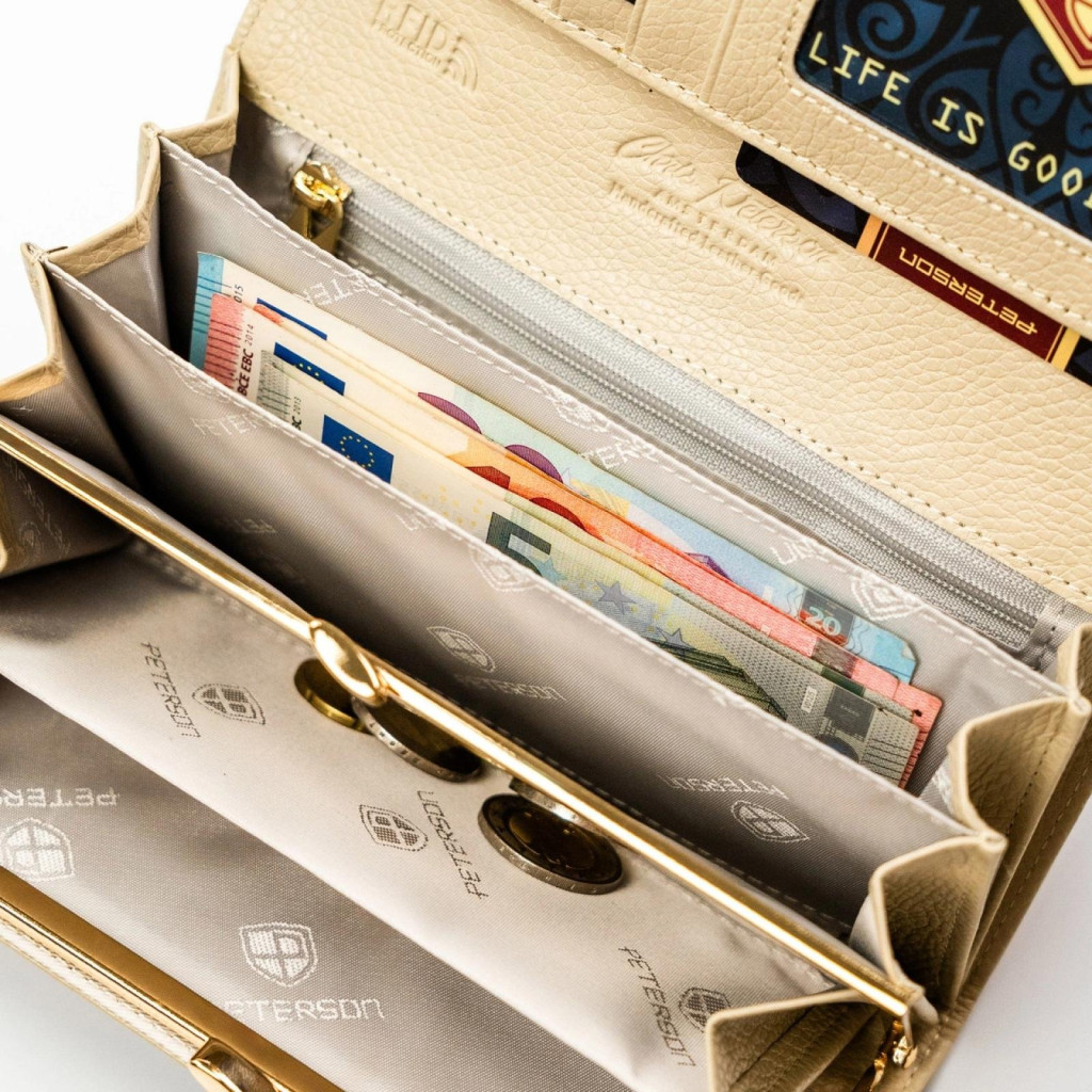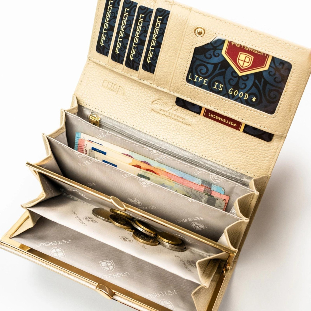 Dámska peňaženka Peterson PTN PS401-MLF béžová z hovädzej kože - elegantný, priestranný a moderný bezpečnostný doplnok
