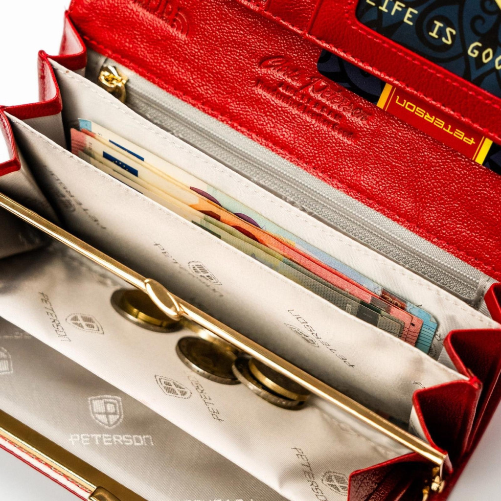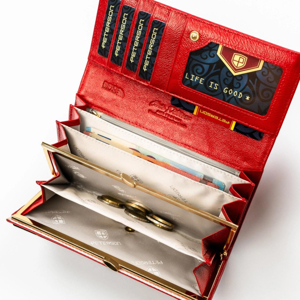 Dámska peňaženka Peterson PTN PS401-MLF z hovädzej kože, červená - výrazná elegancia, priestranný interiér a bezpečné používanie