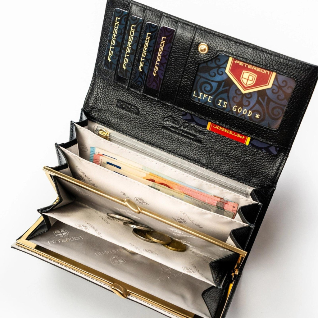 Čierna dámska peňaženka Peterson PTN PS401-MLF z hovädzej kože - elegantná, priestranná a bezpečná voľba