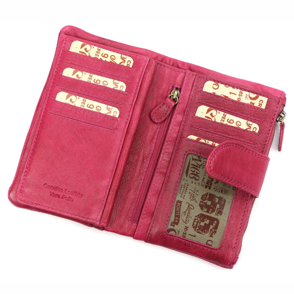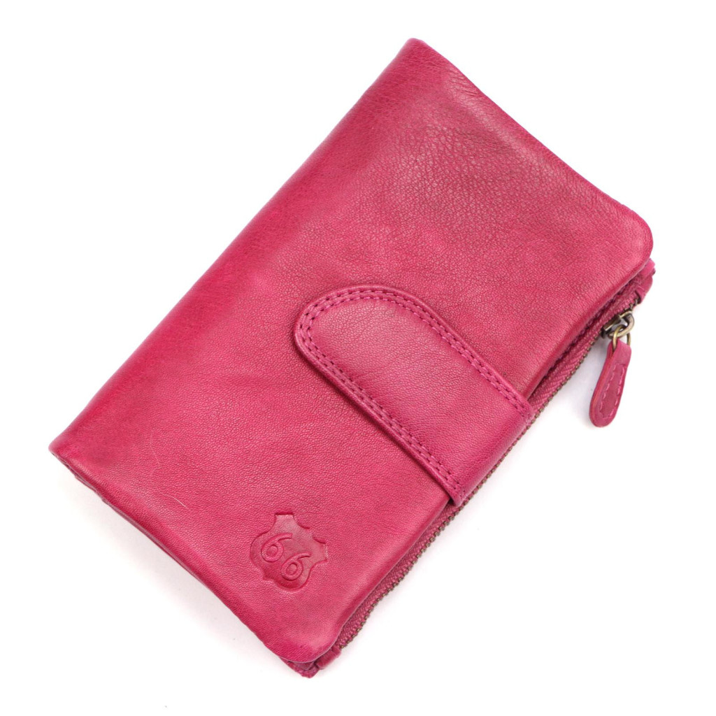 Dámska peňaženka Route 66 magenta z hovädzej kože - mäkká koža, štýlová farba, praktický dizajn