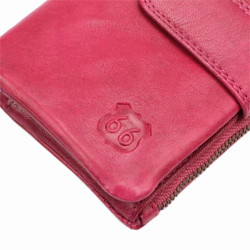 Táto dámska peňaženka Route 66 je skutočne špeciálnou voľbou pre tie, ktoré milujú jedinečné a výrazné doplnky. Magentová farbaje ženská, moderná a zároveň štýlová, takže zaručene vynikne medzi každodennými kúskami. Peňaženka je vyrobená z mäkkej hovädzej kože prémiovej kvality, ktorá je príjemná na dotyk a má dlhú životnosť.