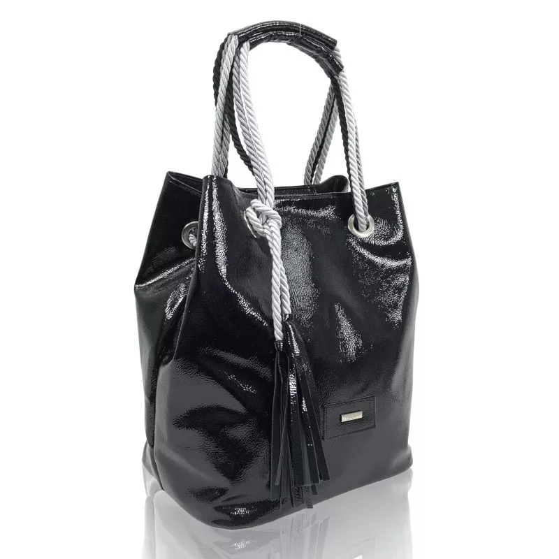 Dámska lakovaná čierna taška cez rameno Zellia, bočná taška