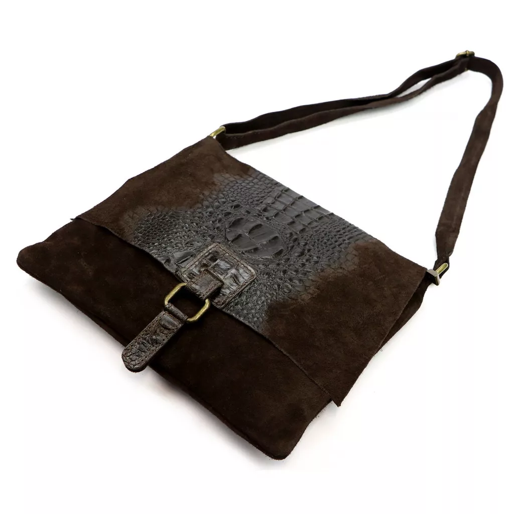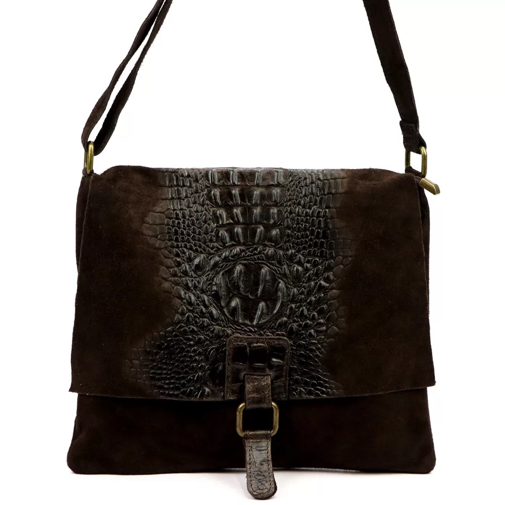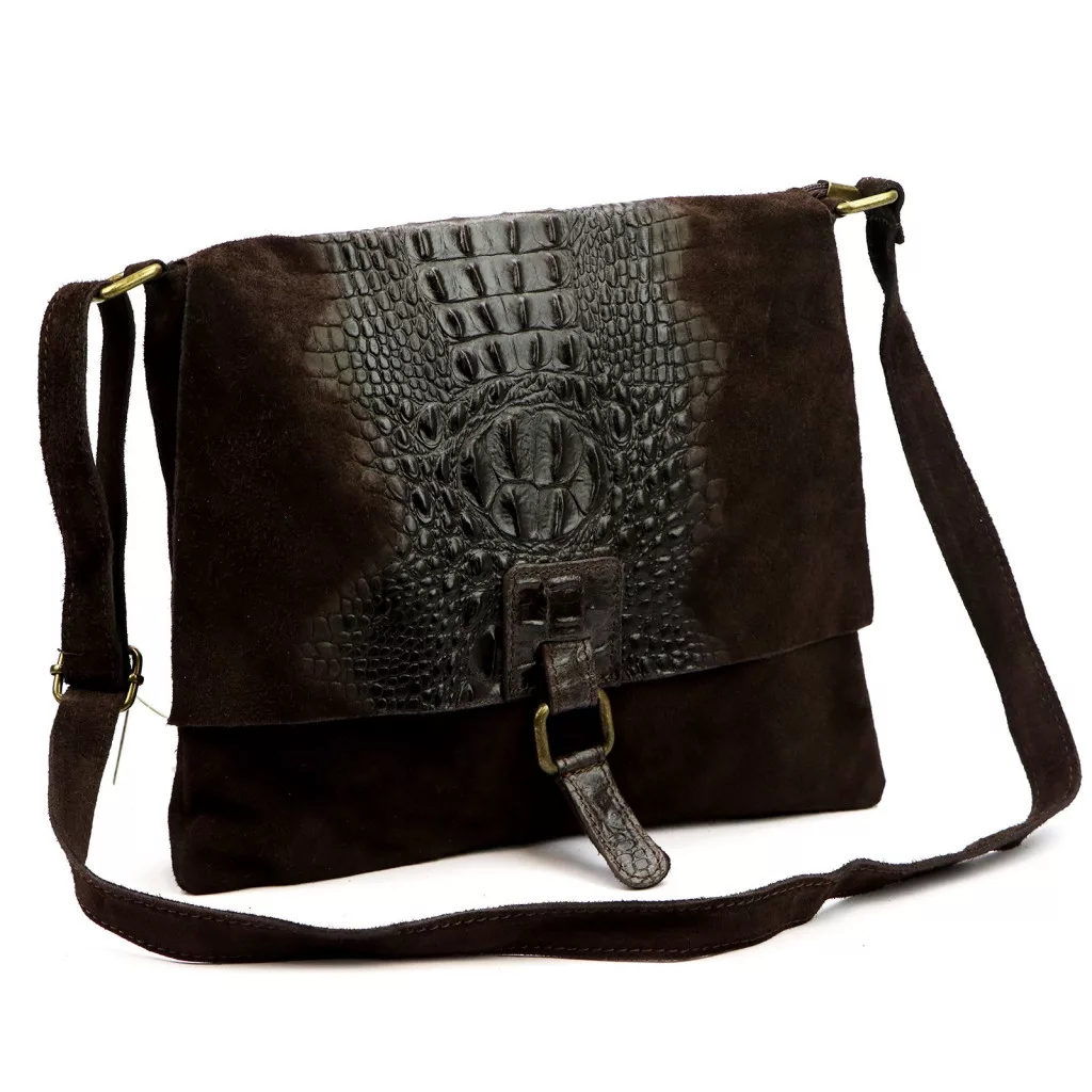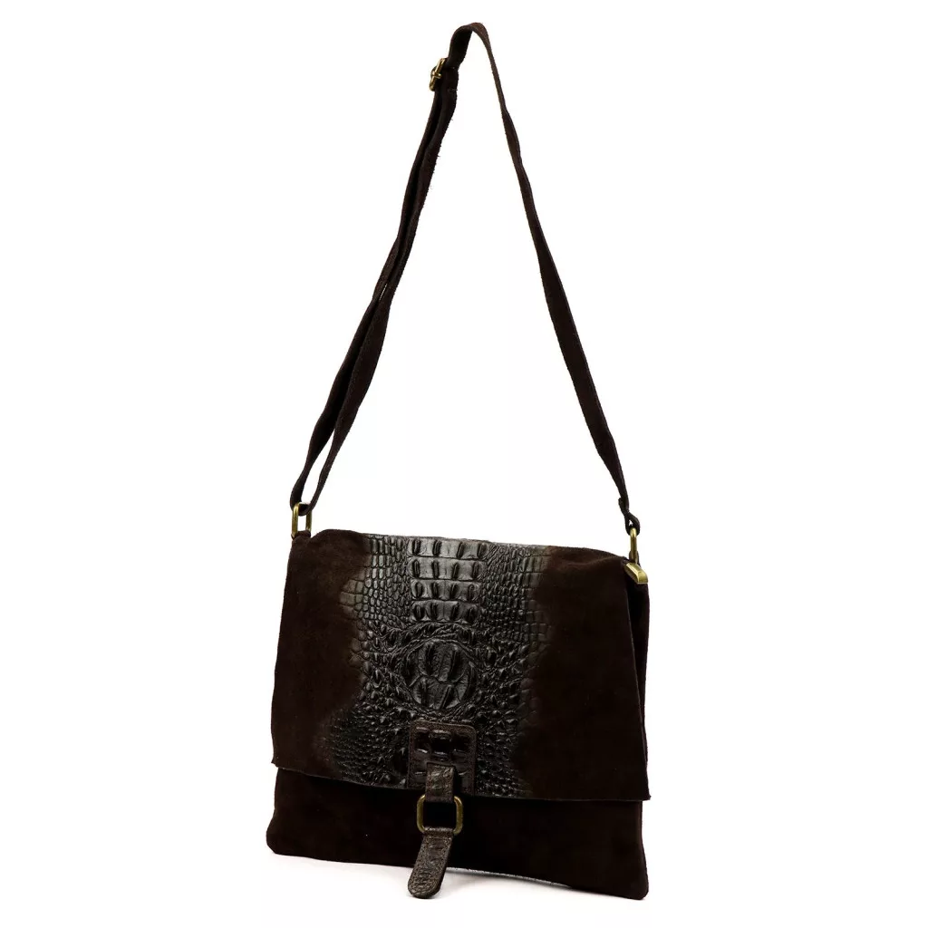 Dámska semišová kožená kabelka Luka 26-076 CROCO tmavohnedá, cez rameno 31 x 26 x 5 cm