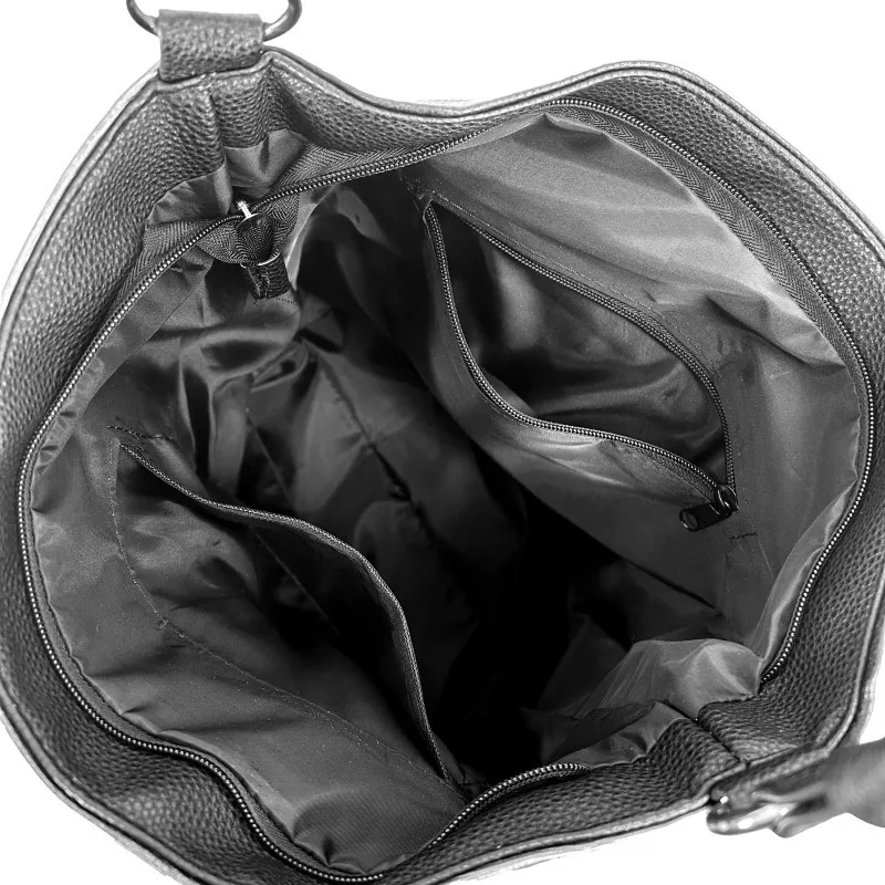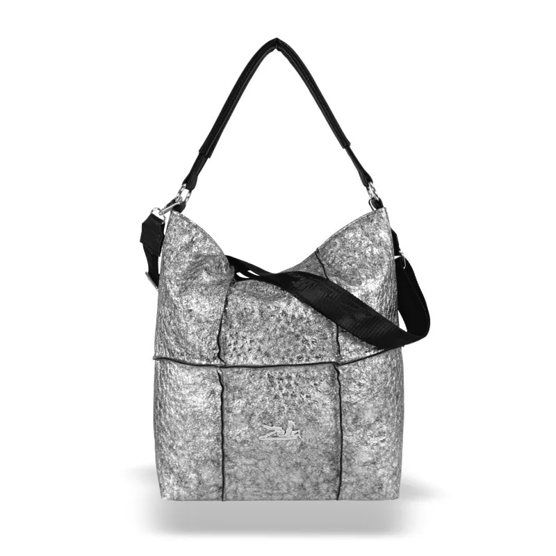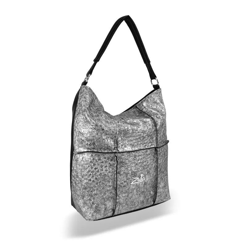 Grafitová verzia Zellia 19141 ponúka moderný, výrazný a jedinečný vzhľad. Celý povrch tašky je vyrobený z vysoko textúrovanej, mierne pokrčenej grafito-striebornej kože, ktorá so svojím kovovým leskom vytvára skutočne výrazný a jedinečný štýl. Veľkolepý povrch pripomínajúci „kovový plech“ poskytuje dynamický a módny celkový efekt, vďaka čomu je tento model vynikajúcou voľbou pre tých, ktorí chcú okrem praktického vzhľadu aj špeciálny doplnok. Jeho priestranný a pohodlný dizajn je užitočný aj v každodennom živote.