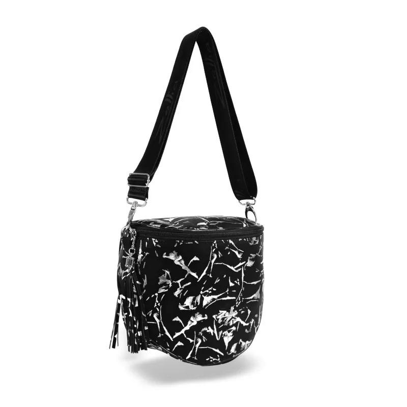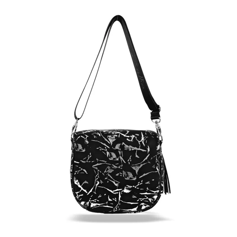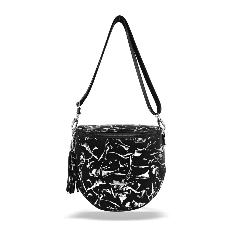 Dámska crossbody kabelka Zellia ZLB12 s elegantným tvarom podkovy a modernou čierno-striebornou farebnou schémou je skutočne štýlovým doplnkom na každý deň. Charakter kabelky je daný špeciálnym, zaobleným tvarom a harmonicky sa striedajúcou čiernou základňou, ako aj strieborným svetelným efektom, ktorý jej dodáva elegantný a zároveň mladistvý vzhľad.