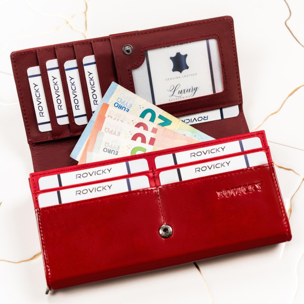 Dámska veľká peňaženka Rovicky RPX-20A-3 z kože a kožených vlákien v červenej farbe