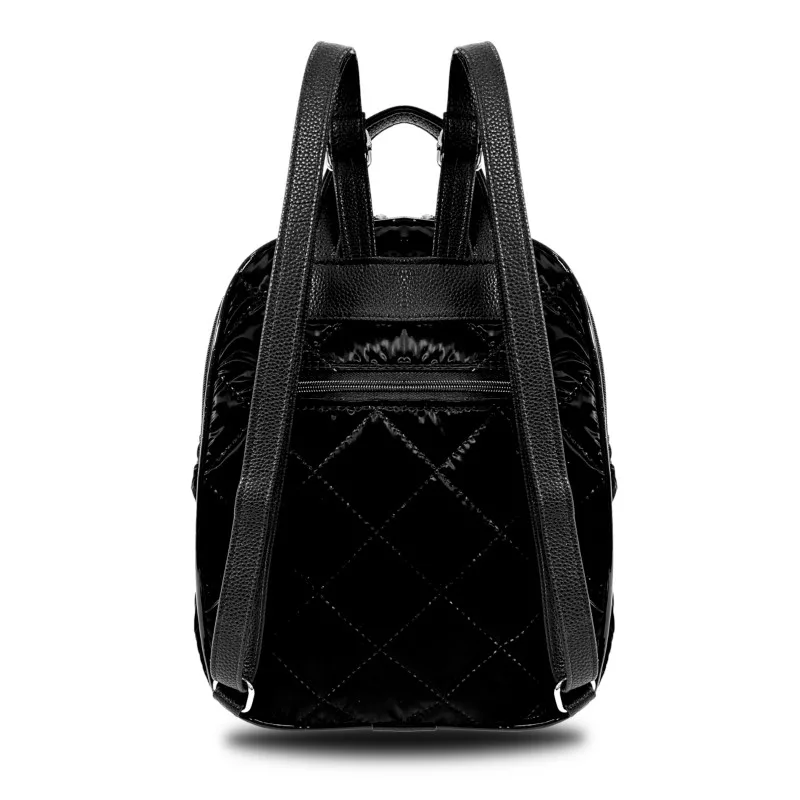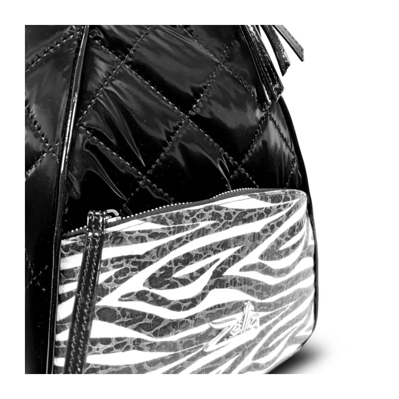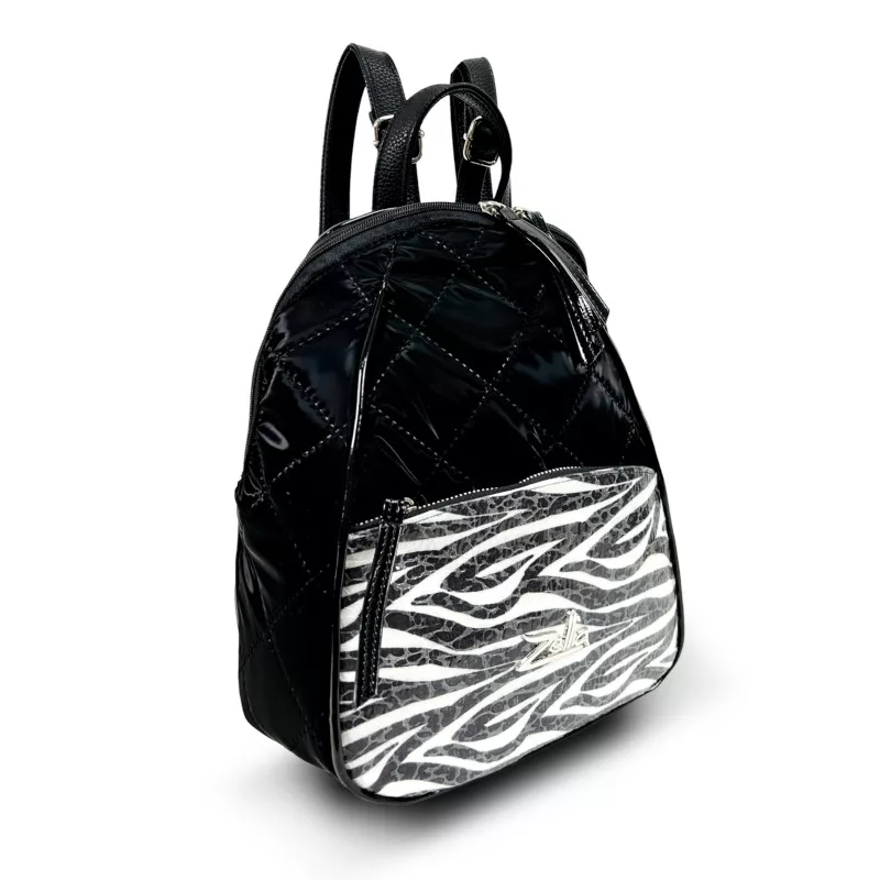 Dámsky batoh Zellia 24045 Čierny prešívaný - Vodoodpudivý - Lakovaný vzor Zebra -