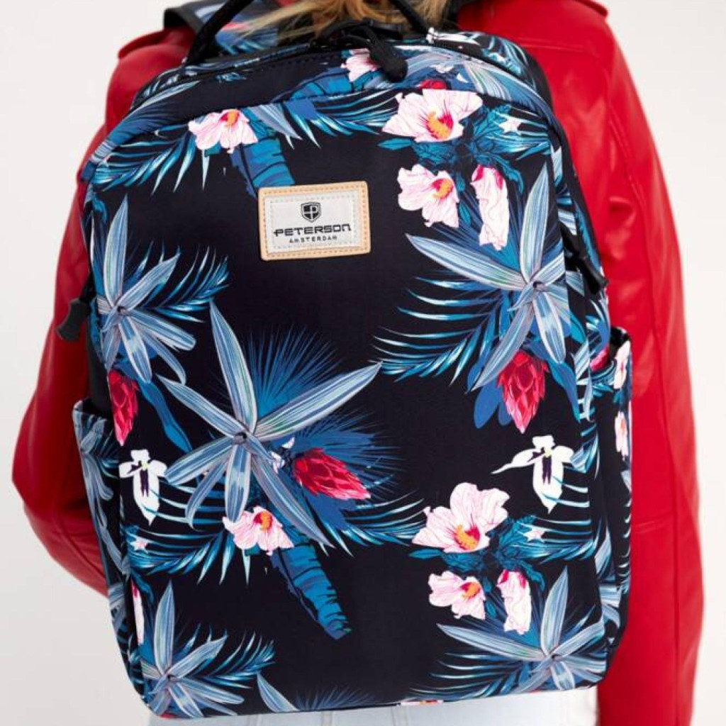 Dámsky vzorovaný polyesterový batoh Petersonje skutočným kúskom, ktorý kombinuje praktickosť s jedinečným, štýlovým vzhľadom. Dizajn listov a kvetov dodáva taške svieži, ženský a charakteristický štýl, preto ju odporúčame tým, ktoré majú rady pútavé, no zároveň harmonické doplnky. Vďaka odolnému polyesterovému materiálu je ľahká, odolná a optimalizovaná na každodenné použitie, či už ide o prácu, školu, turistiku alebo mestské aktivity.