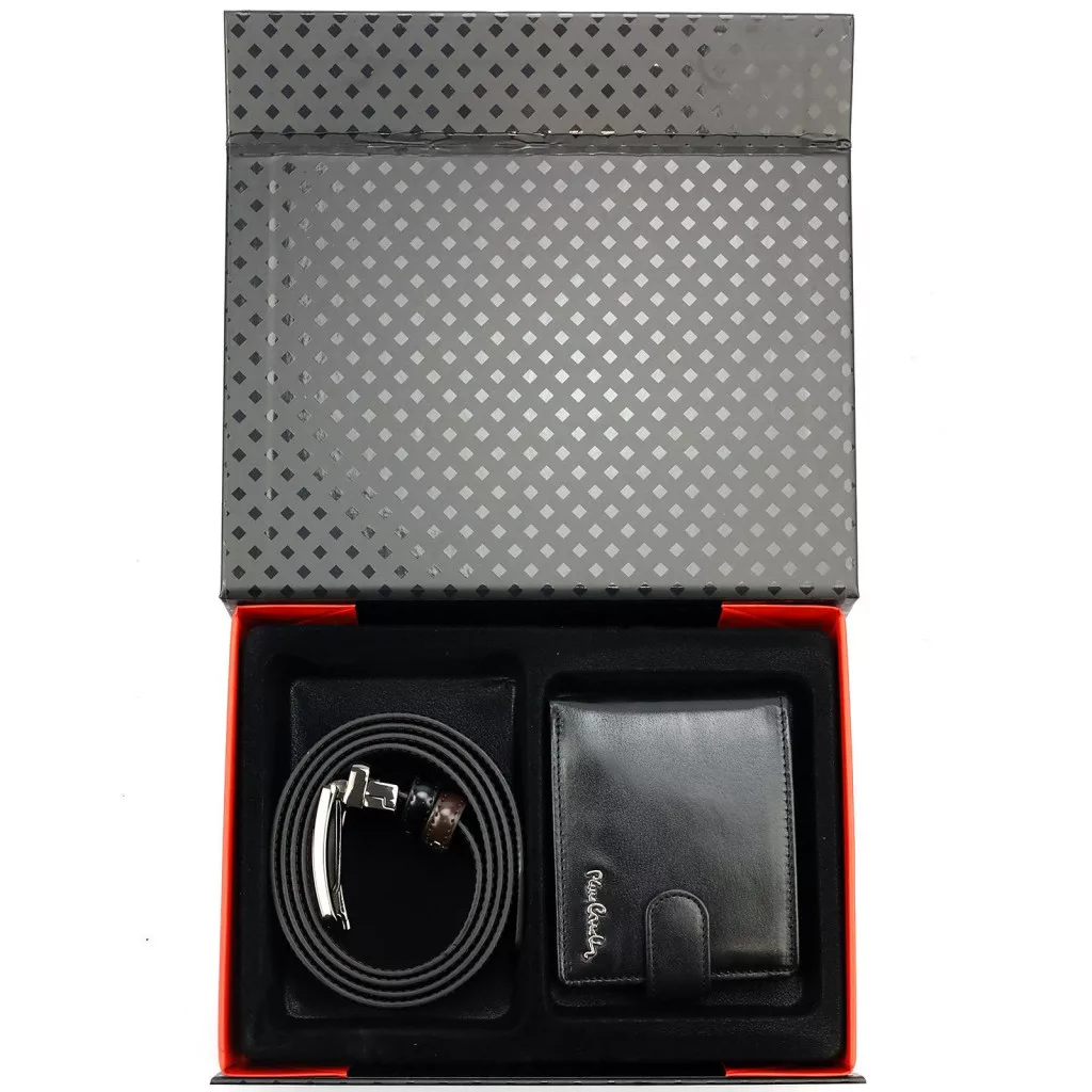 Darčeková sada pánskej koženej peňaženky a opaskov Pierre Cardin ZG-202-BN v čierno-hnedej farbe 130 cm