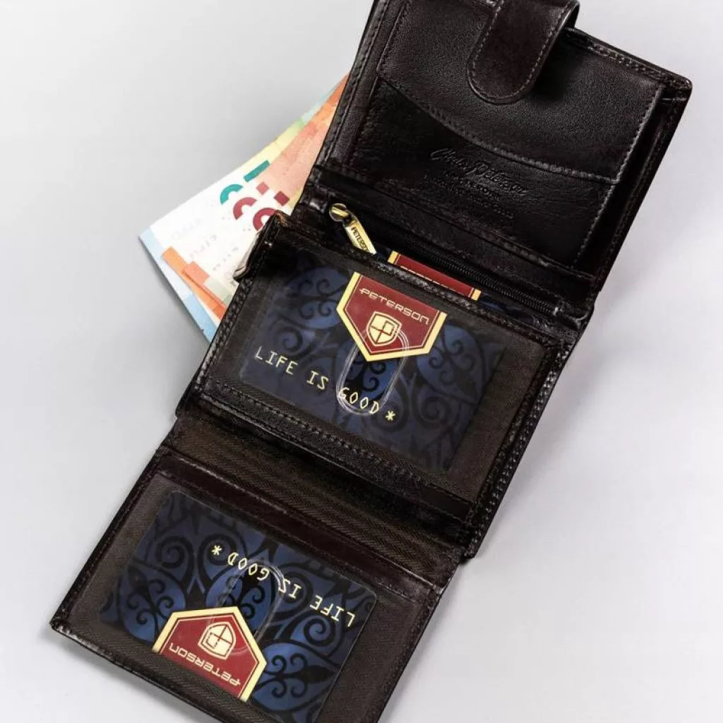 Pánska hnedá peňaženka z hovädzej kože Peterson PTN 22309L-VT - elegantná, bezpečná a vynikajúco organizovaná