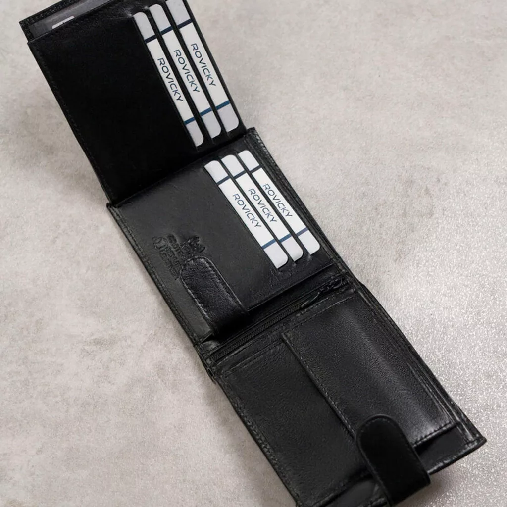 Pánska kožená peňaženka Cavaldi 0002L-P-BS RFID čierna 12,3 x 10,2 x 2 cm