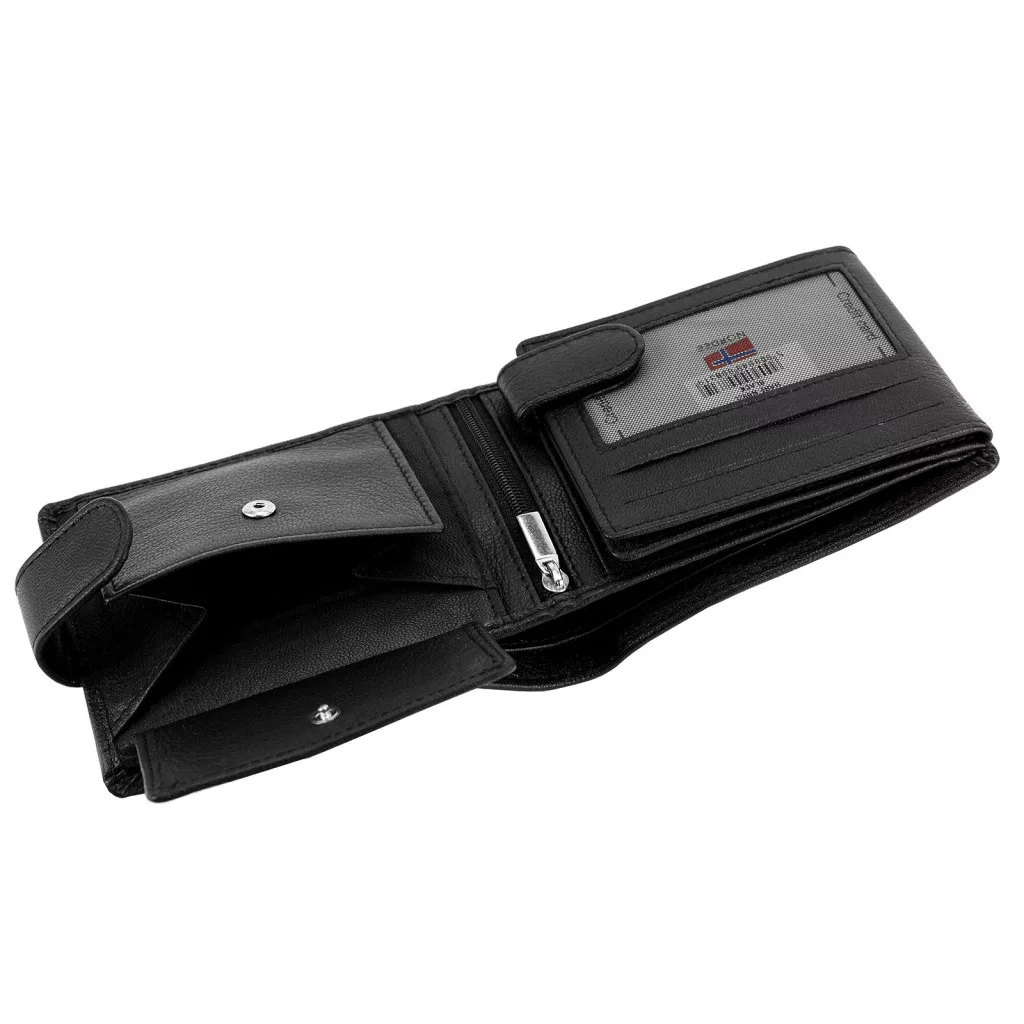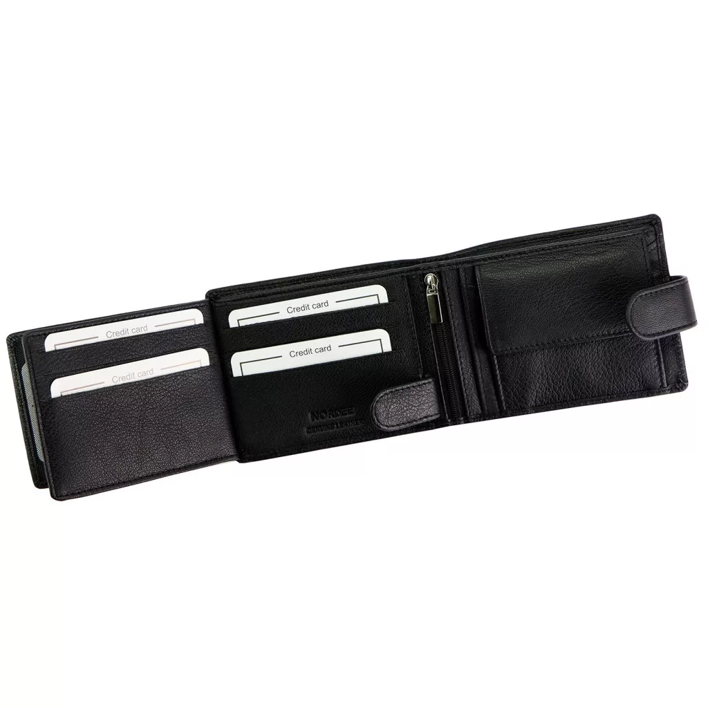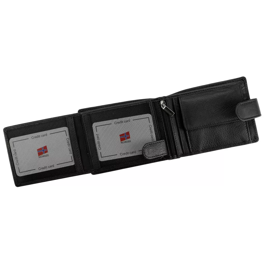 Čierna pánska peňaženka Nordee z hovädzej kože - kompaktná, elegantná a poskytuje maximálne zabezpečenie