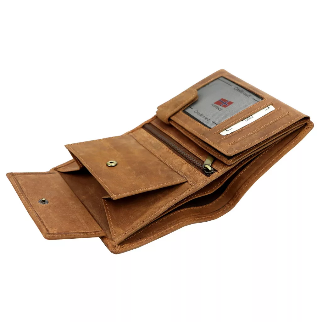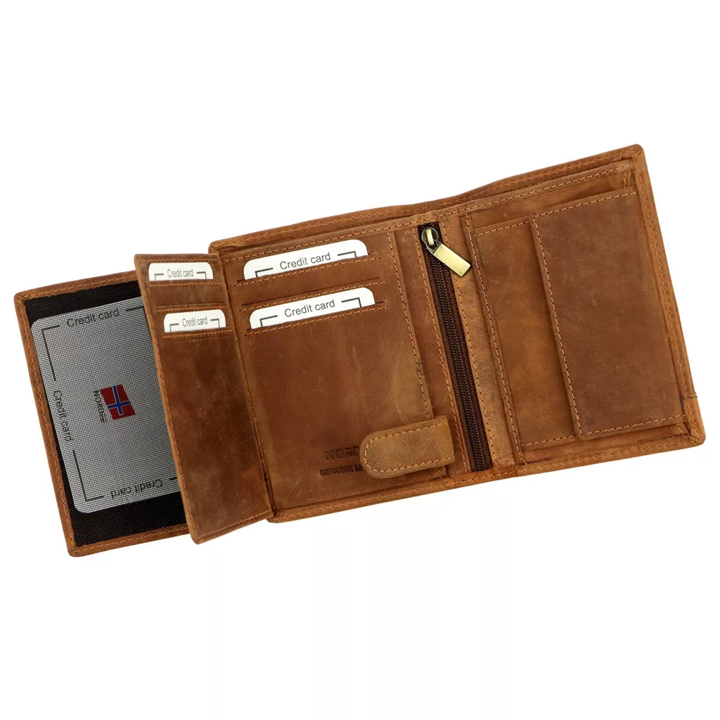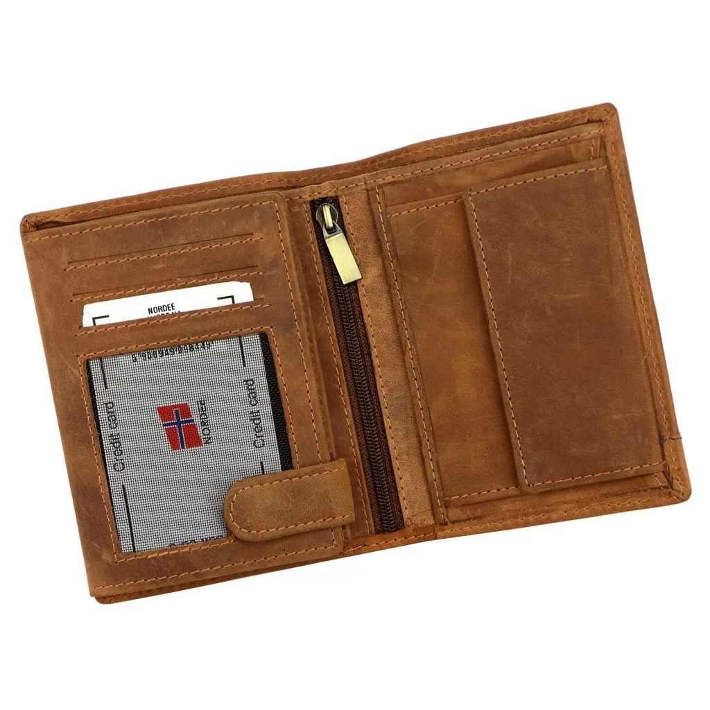 Pánska kožená peňaženka Nordee HJORT N4 v koňakovej farbe 9,5 x 12,5 x 3 cm
