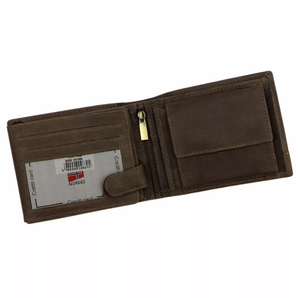 Hnedá pánska peňaženka Nordee HJORT N992 z hovädzej kože - čistá elegancia a dokonalosť funkčnosť