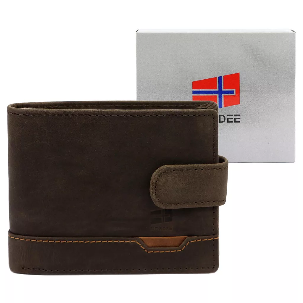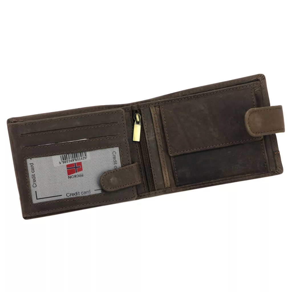 Pánska hnedá peňaženka Nordee HJORT N992L z hovädzej kože - elegantný vzhľad a bezpečný, praktický dizajn