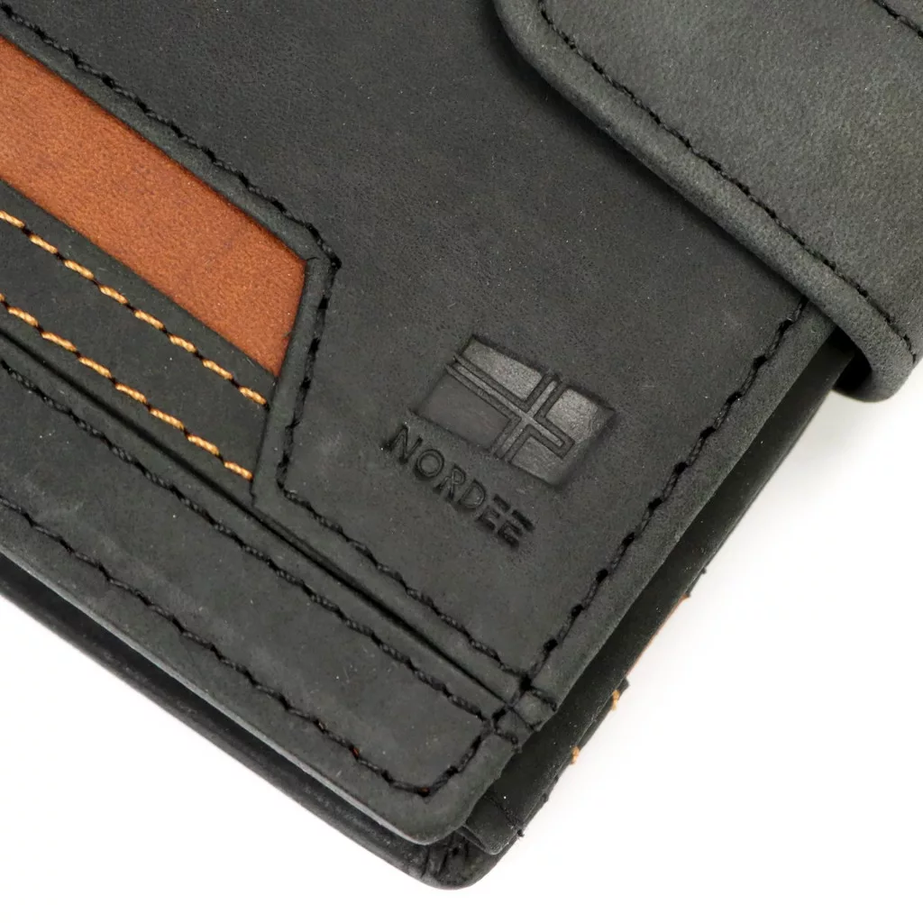Čierna pánska kožená peňaženka Nordee HVAL N4Lje ideálnou voľbou pre tých, ktorí hľadajú štýlový a praktický doplnok. Peňaženka je vyrobená z prvotriednej pravej kože, ktorá zaručuje odolnosť a sofistikovaný vzhľad. Čierna farba je elegantná a ideálna na každú príležitosť. Priestranné vnútorné usporiadanie vám umožňuje pohodlne a bezpečne uložiť všetky vaše dôležité dokumenty, karty a hotovosť.
