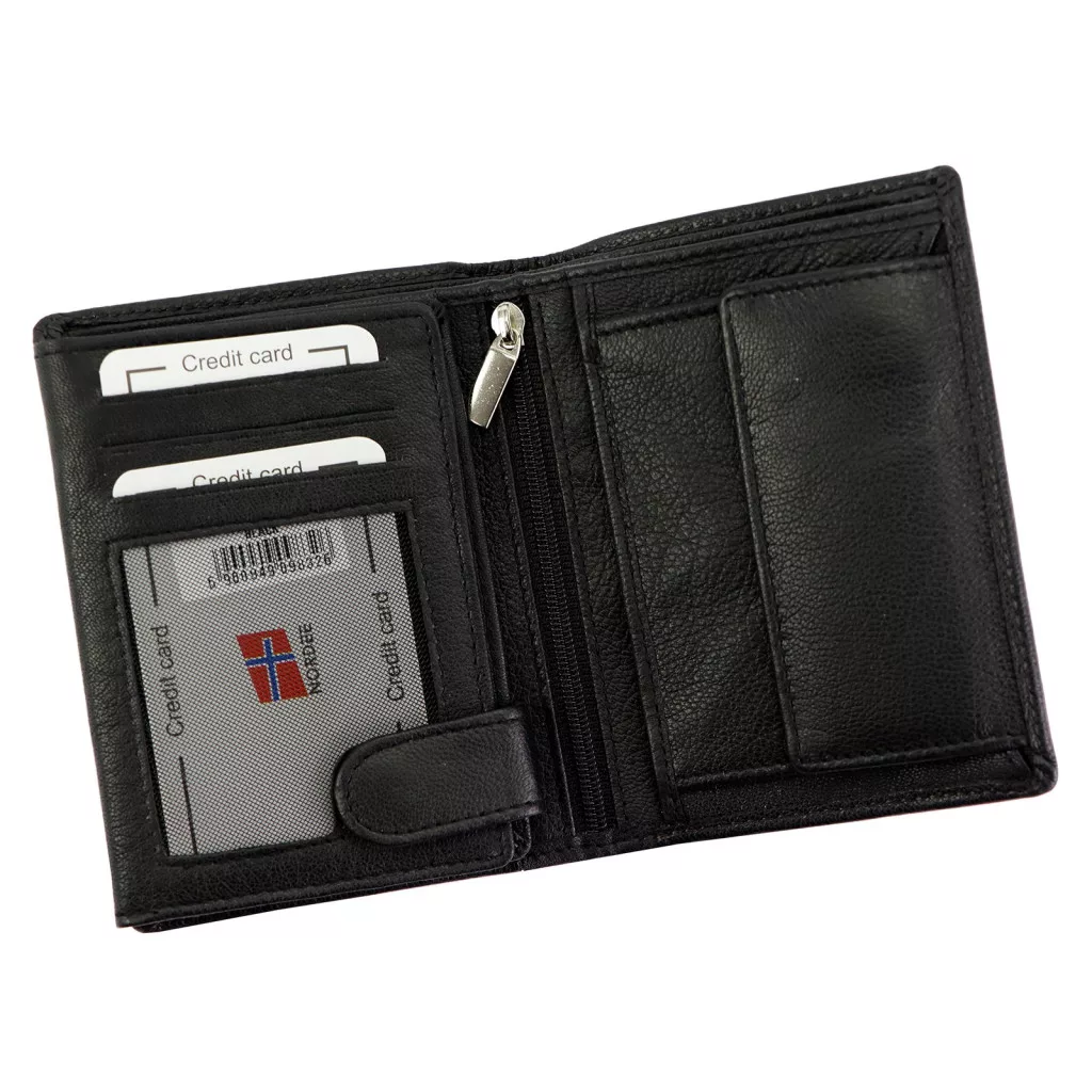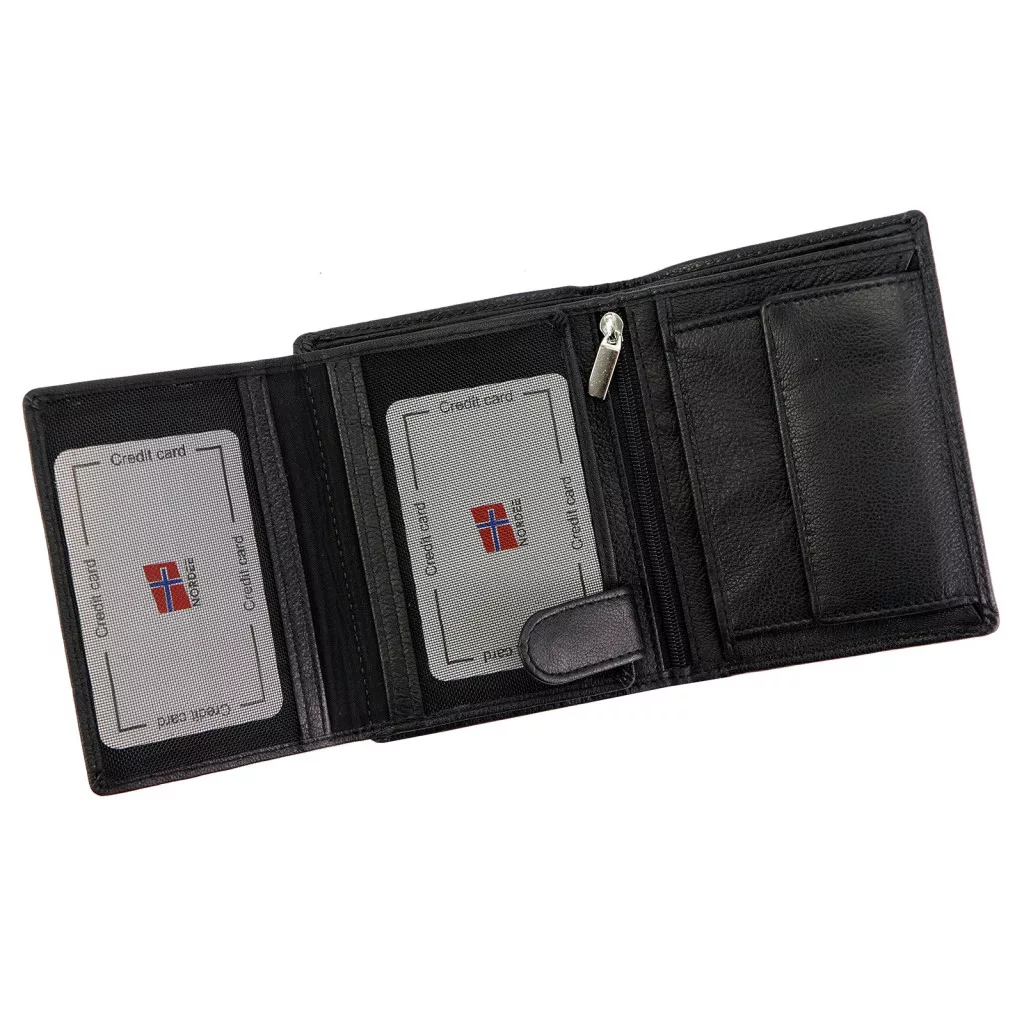 Čierna pánska peňaženka Nordee z hovädzej kože - čistá elegancia a bezpečný dizajn