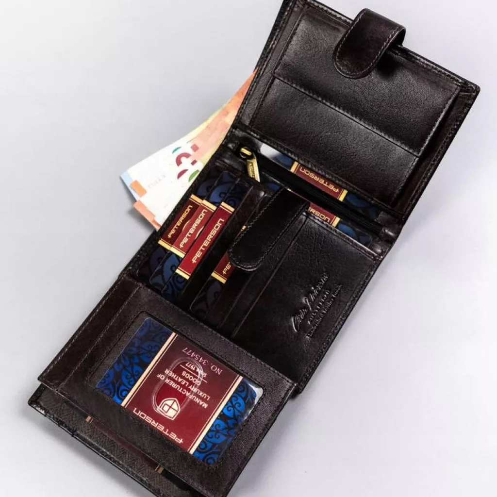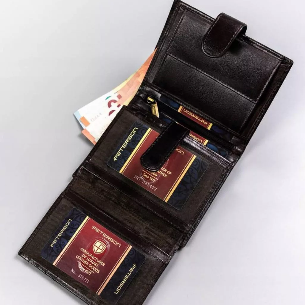 Pánska peňaženka Peterson PTN 22307L-VT z hnedej hovädzej kože - prémiová kvalita, maximálne zabezpečenie a elegantný vzhľad