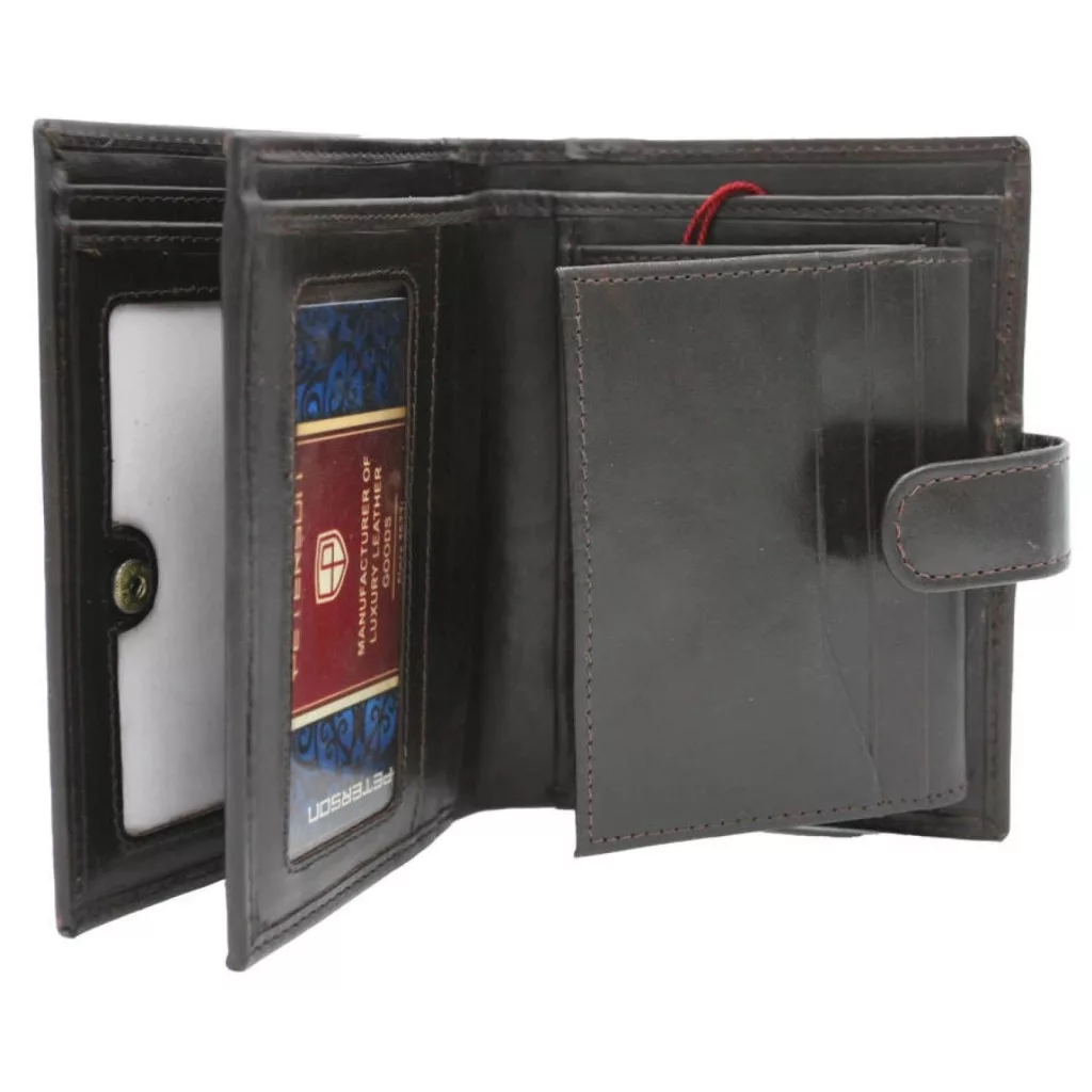 Peňaženka Peterson PTN 22310L-VT je ideálnou voľbou pre tých, ktorí uprednostňujú odolné, klasické a premyslené kožené doplnky. Je vyrobená z prémiovej kvalitnej hovädzej kože, ktorá zaisťuje nielen elegantný vzhľad, ale aj dlhú životnosť. Jeho celoplošný dizajn poskytuje extra bezpečnosť, takže peňaženka sa nemôže náhodne otvoriť.