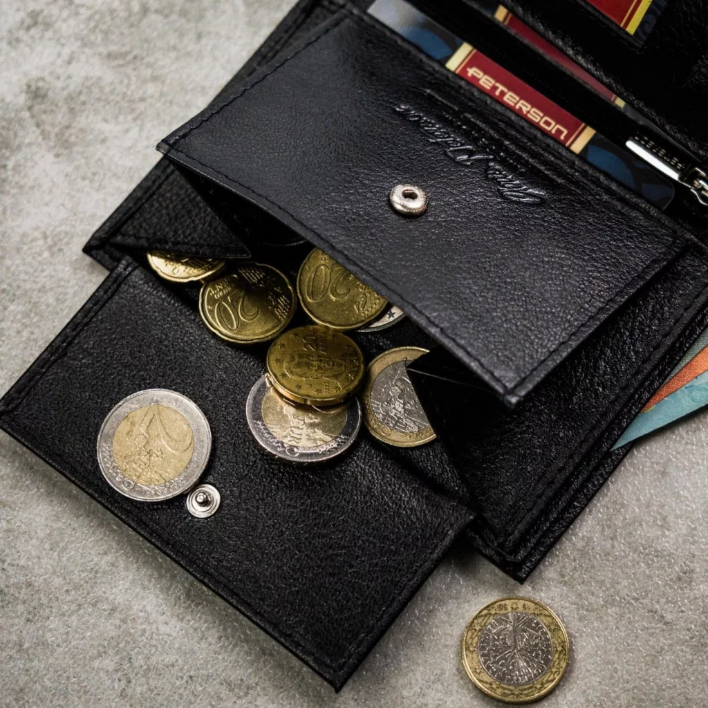 Čierna pánska peňaženka Peterson PTN N4L-SPDM z hovädzej kože - Klasická elegancia s modernou funkčnosťou