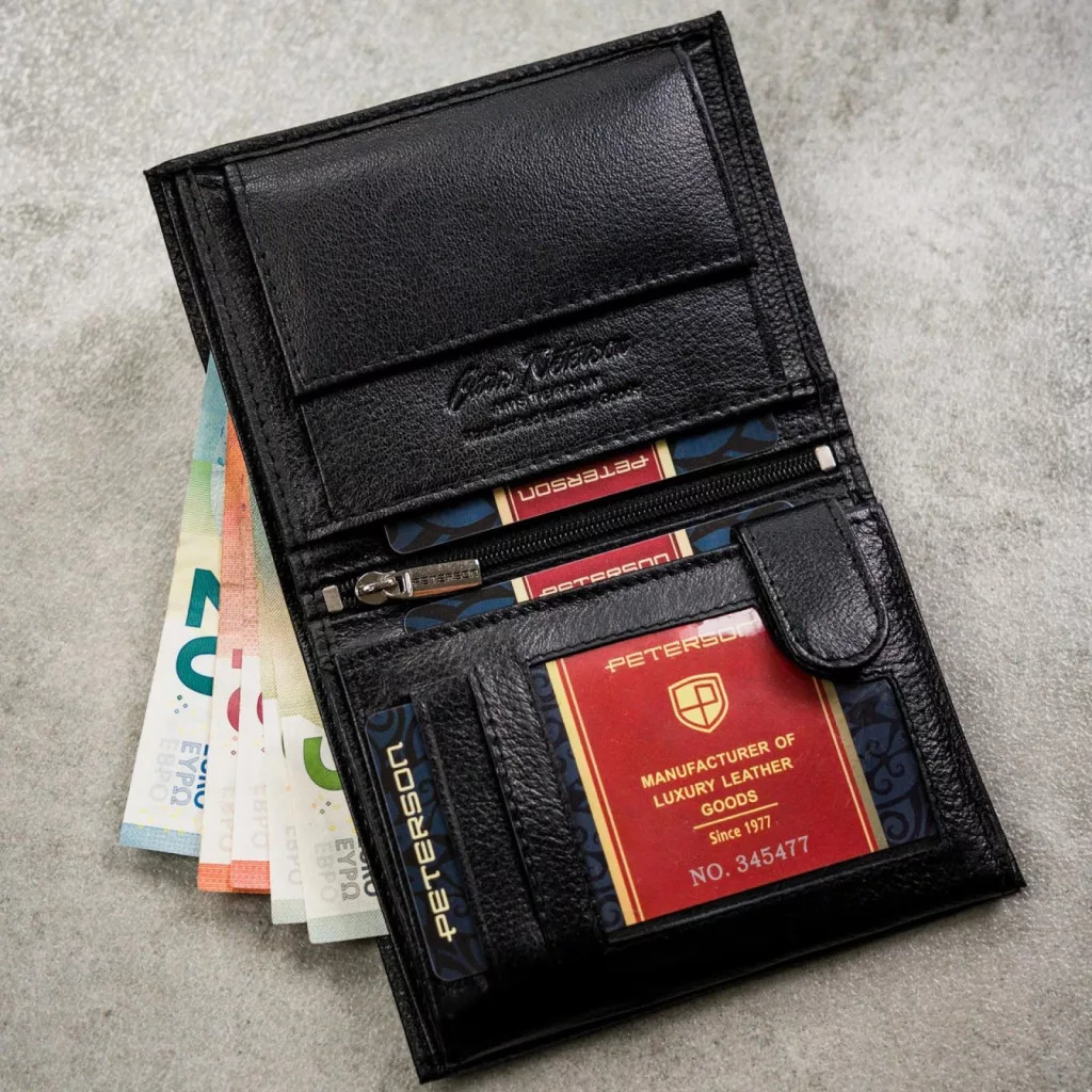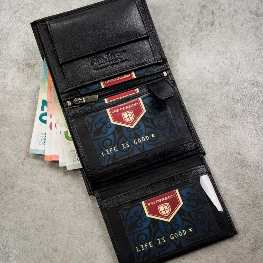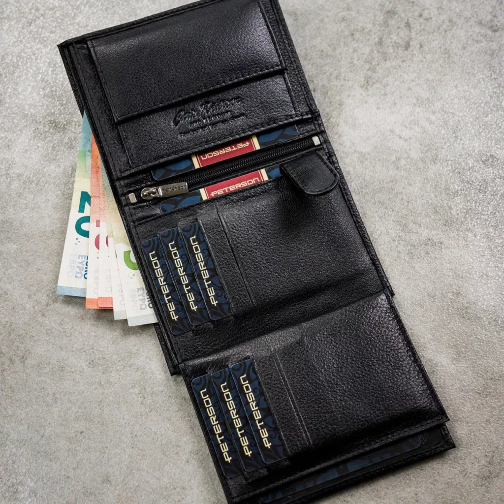 Pánska peňaženka Peterson PTN N4L-SPDM z čiernej hovädzej kože – klasická elegancia s modernou funkčnosťou