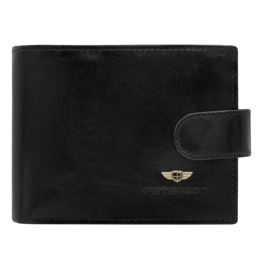 Pánska čierna peňaženka z hovädzej kože Peterson PTN N992L-VTje elegantný a spoľahlivý doplnok na každodenné nosenie, ktorý kombinuje klasický štýl s modernou funkčnosťou. Vyrobená z prvotriednej mäkkej hovädzej kože poskytuje nadčasový a sofistikovaný vzhľad. Kovové logo značky na prednej strane zvýrazňuje peňaženku ako diskrétny, no zároveň výrazný štýlový prvok.