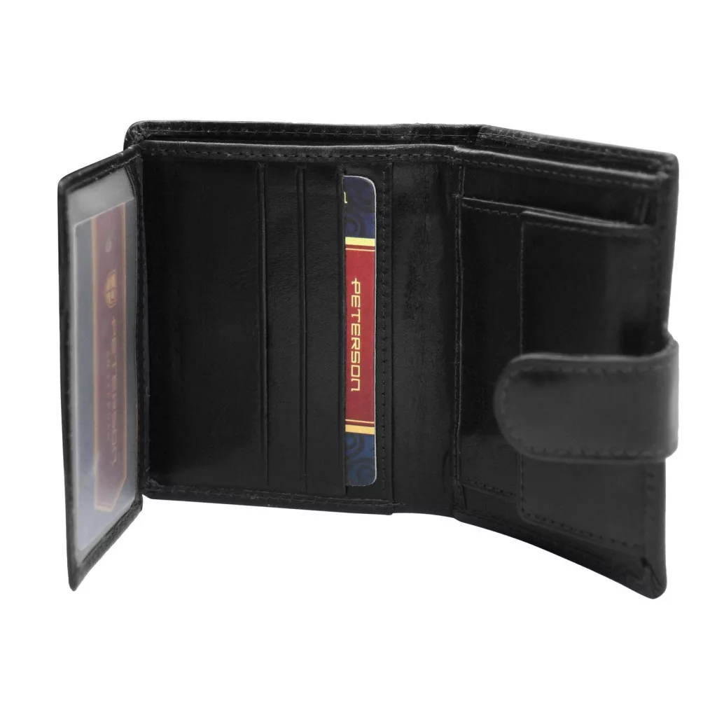 Pánska peňaženka Peterson PTN RM-12L-BUF z čiernej hovädzej kože - klasická elegancia a praktické rozloženie