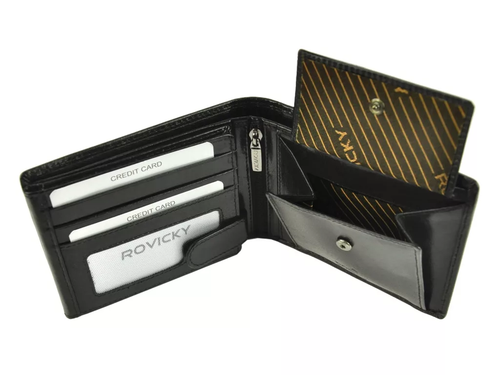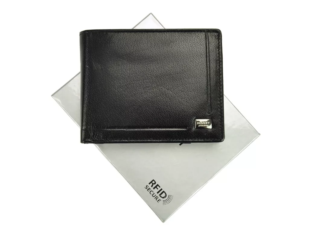 Pánska kožená peňaženka Rovicky PC-103-BAR RFID čierna - klasický a bezpečný doplnok