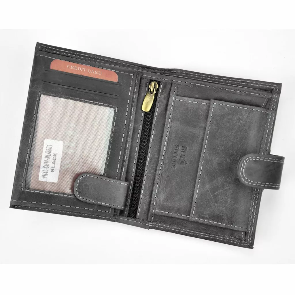Pánska kožená peňaženka Wild N4L-CHM-NL s RFID v sivej farbeje perfektnou voľbou pre tých, ktorí si cenia funkčnosť, bezpečnosť a čistý, moderný vzhľad.