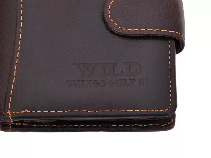 Pánska kožená peňaženka Wild Things Only 5505-1 Cognacje vyrobená z prvotriednej kože, ktorá zaručuje odolnosť a eleganciu pre každodenné použitie. Koňakový odtieň je teplá, prírodná farba, ktorá vyžaruje nadčasový štýl, vďaka čomu je ideálnou voľbou pre tých, ktorí hľadajú doplnok, ktorý kombinuje praktickosť a eleganciu.