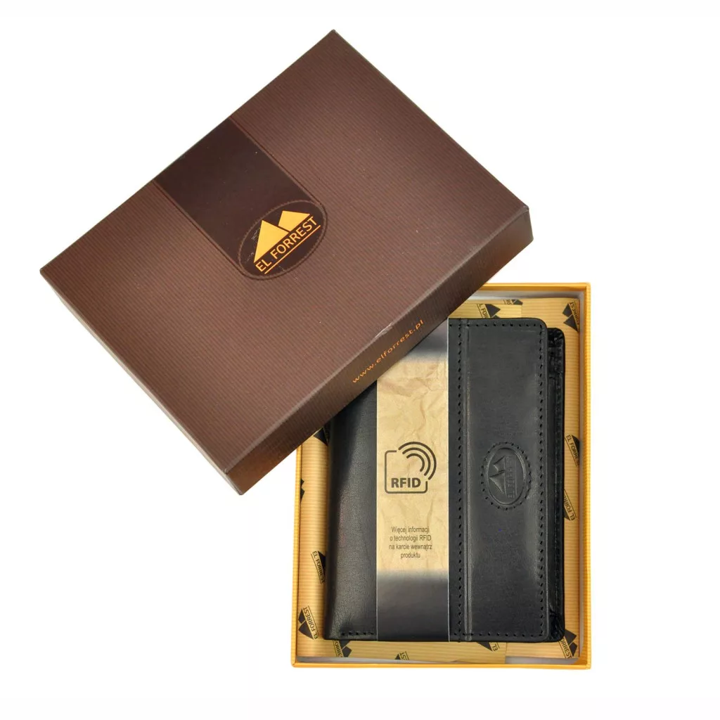Pánska peňaženka EL FORREST 914-61 s RFID čipom, čierna, z hovädzej kože, 9 x 12,5 x 2,5 cm