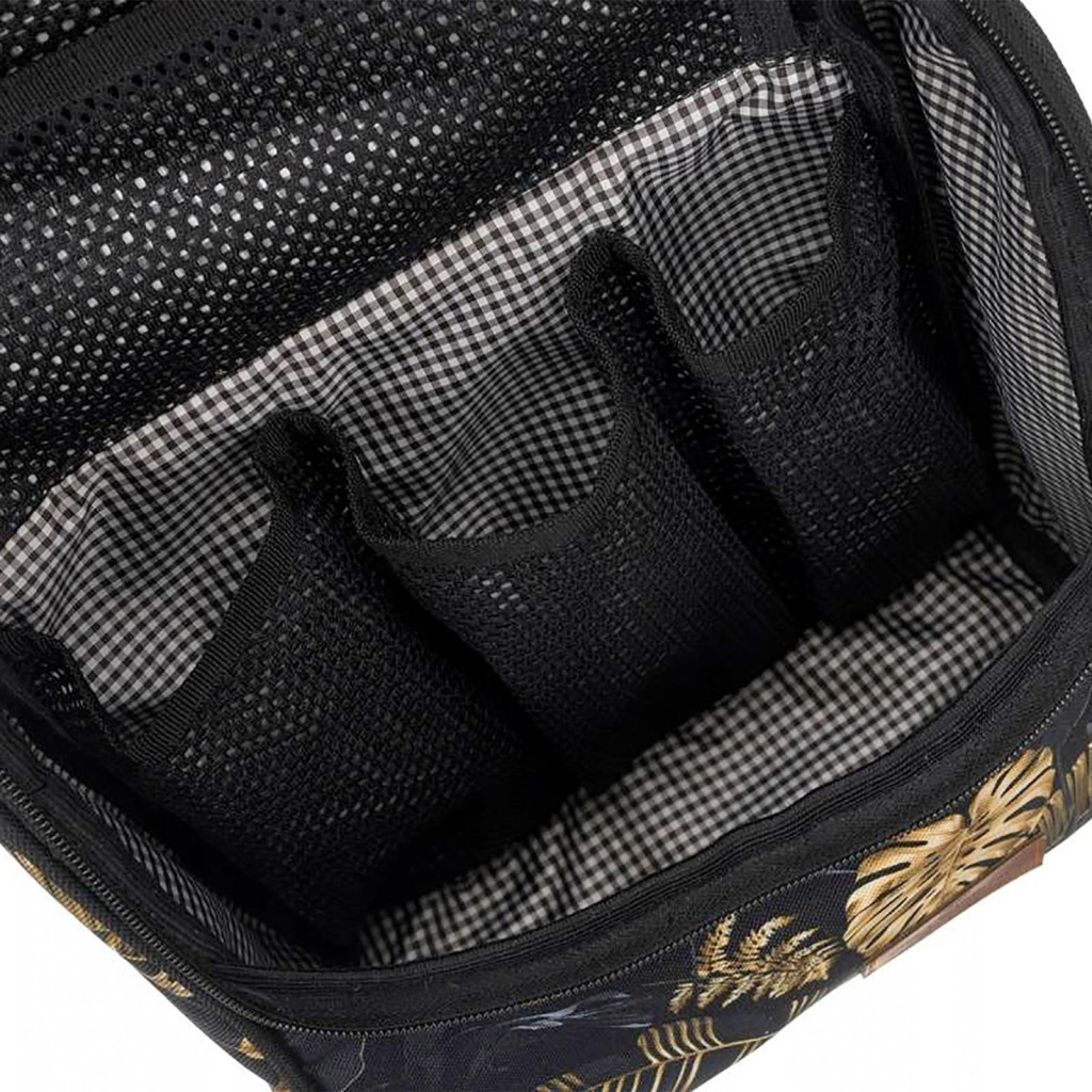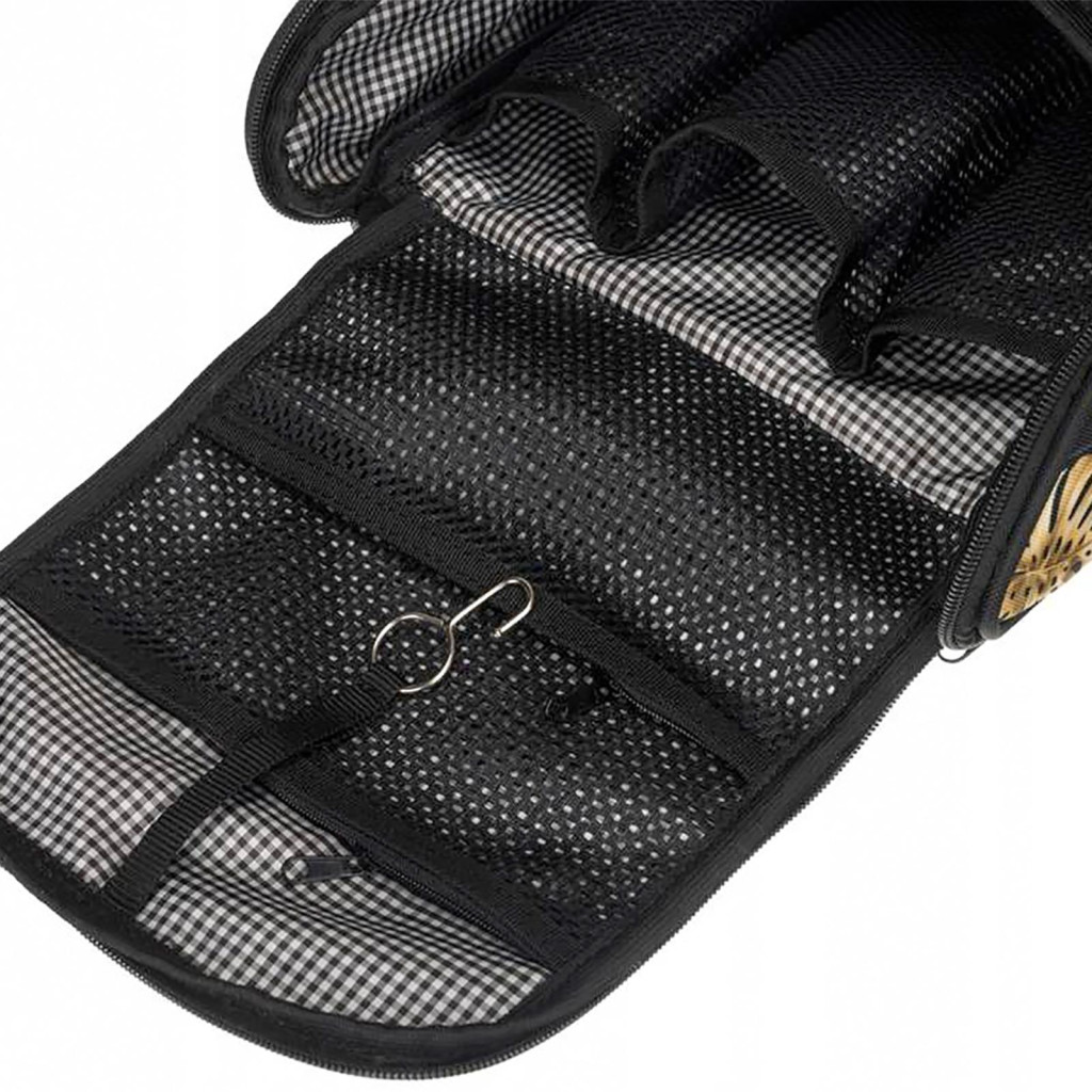 Vnútorný dizajn je praktický a premyslený. Na vnútornej strane veka sa nachádza sieťované vrecko na zips, ktoré je ideálne na uloženie menšej kozmetiky, šperkov alebo doplnkov. Spodná časť má niekoľko flexibilných sieťovaných priečok, ktoré bezpečne držia fľaštičky, tuby a iné kozmetické produkty a zároveň udržiavajú obsah ľahko viditeľný.