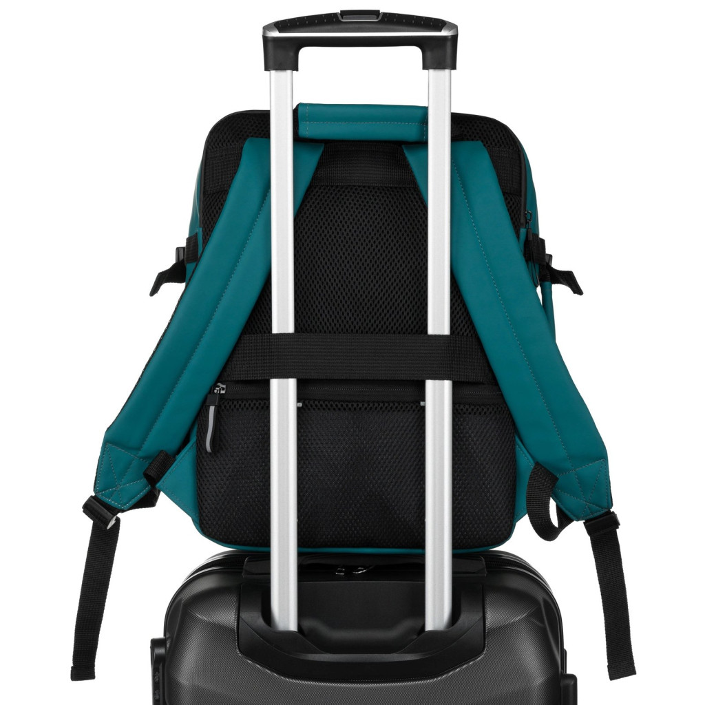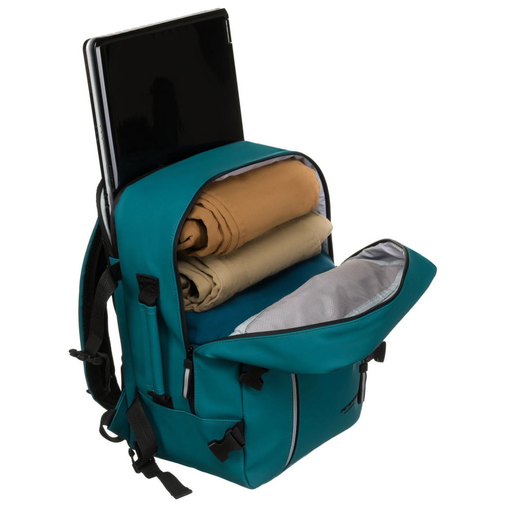 Polyesterový batoh Peterson PTN SKYLINE v tyrkysovej farbeje štýlová, ľahká a mimoriadne praktická voľba pre tých, ktorí veľa cestujú alebo hľadajú prehľadnú tašku na každodenné nosenie. Živá tyrkysová farba mu dodáva moderný vzhľad a dizajn tašky plne zodpovedá požiadavkám leteckých spoločností na príručnú batožinu. Vďaka svojej veľkosti je to bezplatná príručná batožina na letoch spoločností WizzAir a Ryanair, vďaka čomu je ideálnym spoločníkom na krátke výlety alebo pobyty v meste.