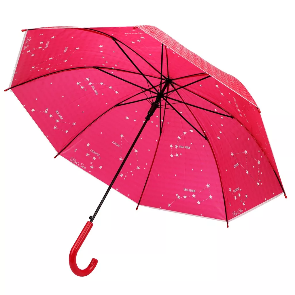 Ružový dáždnik RST s bielymi hviezdami a súhvezdiami – veselá, špeciálna a spoľahlivá ochrana