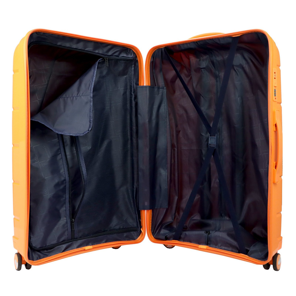 Súprava kufrov Pierre Cardin Orange Polypropyleneponúka mimoriadne odolnú a zároveň ľahkú konštrukciu navrhnutú pre potreby moderných cestovateľov. Polypropylénový materiál poskytuje vynikajúcu odolnosť voči nárazom, zatiaľ čo oranžová farba dodáva kufrom svieži, energický a ľahko rozpoznateľný vzhľad.