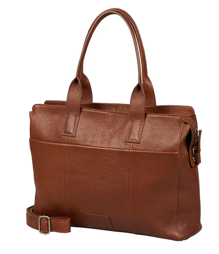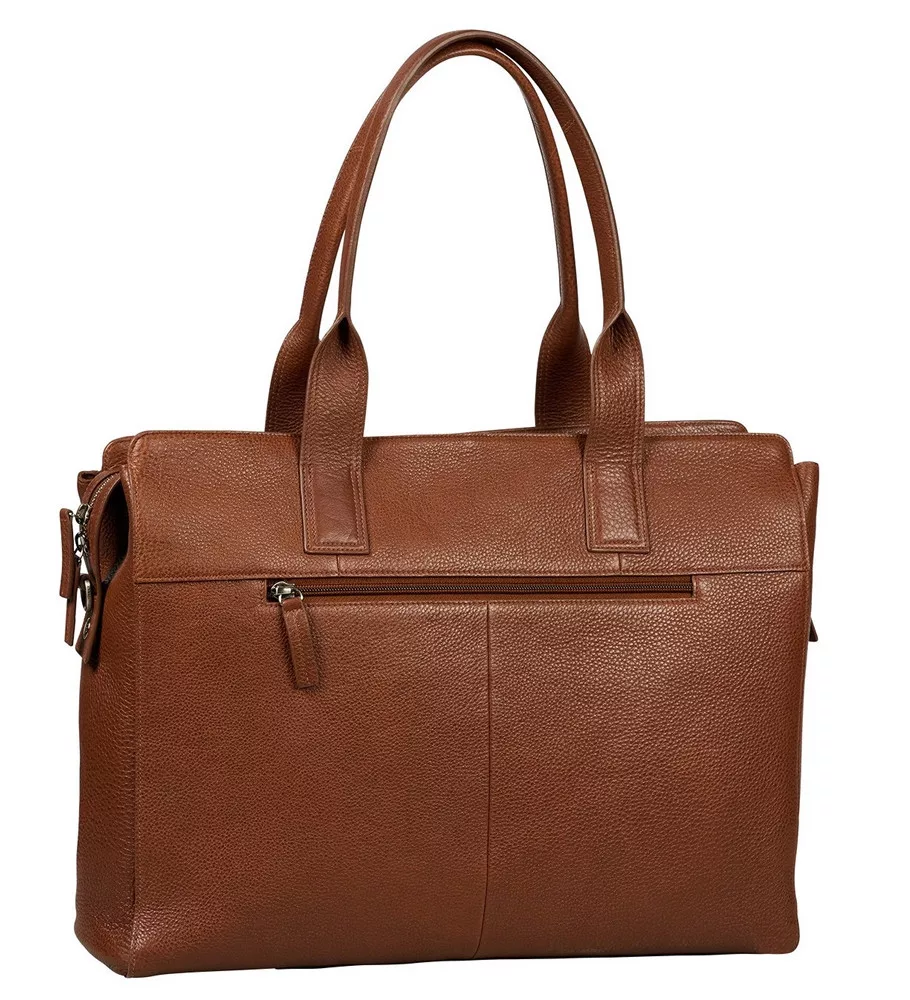Športovo elegantná, moderná kožená taška na notebook v čistom štýle.