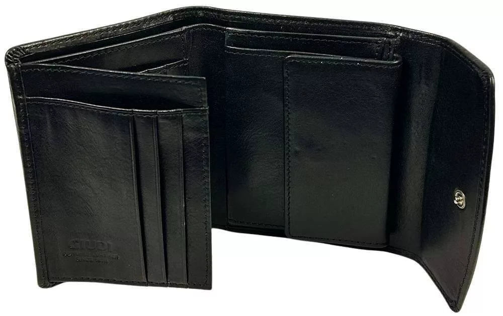 Patent na mince je vystlaný syntetickým hodvábom s logom Giudi. S dvojitým držiakom na papierové peniaze, 6 držiakmi na karty, 3 priehradkami, 1 držiakom na karty s okienkom.