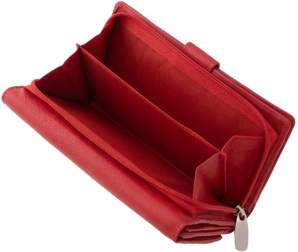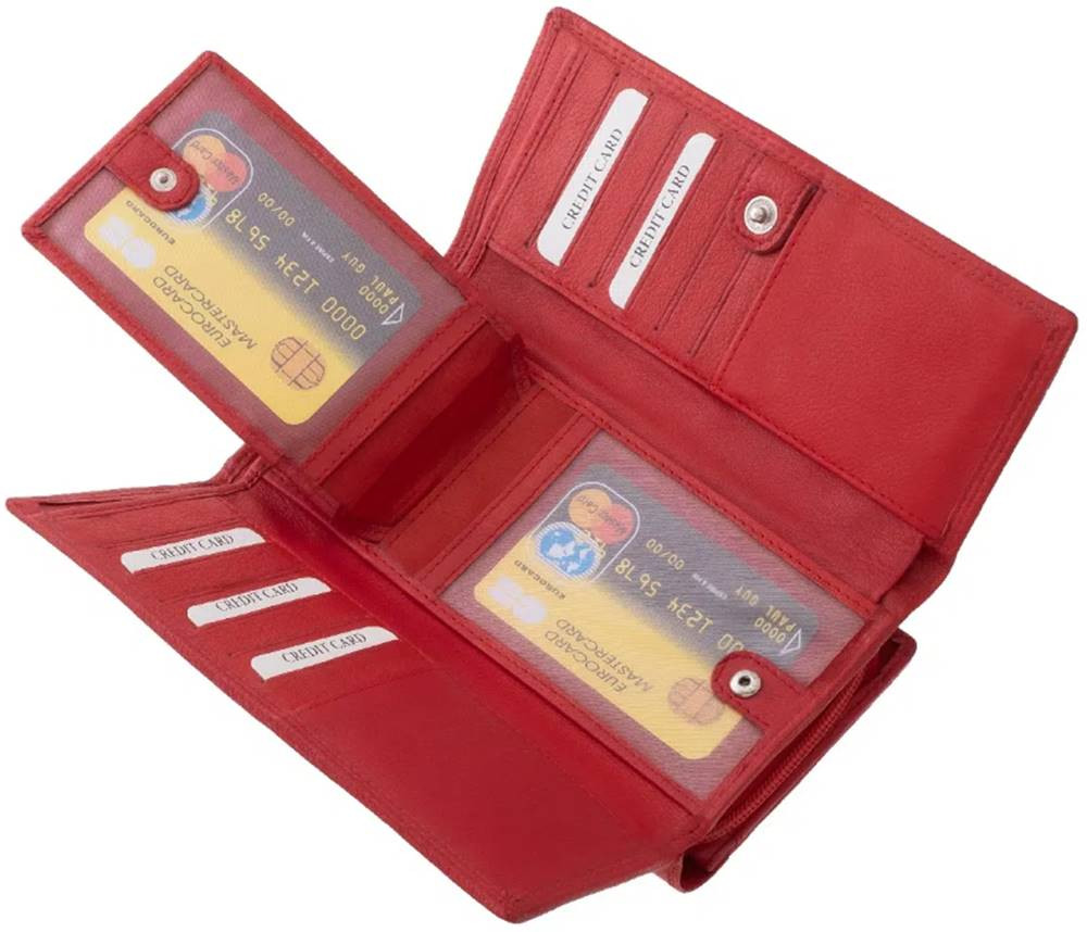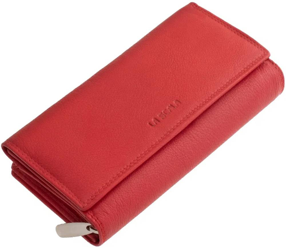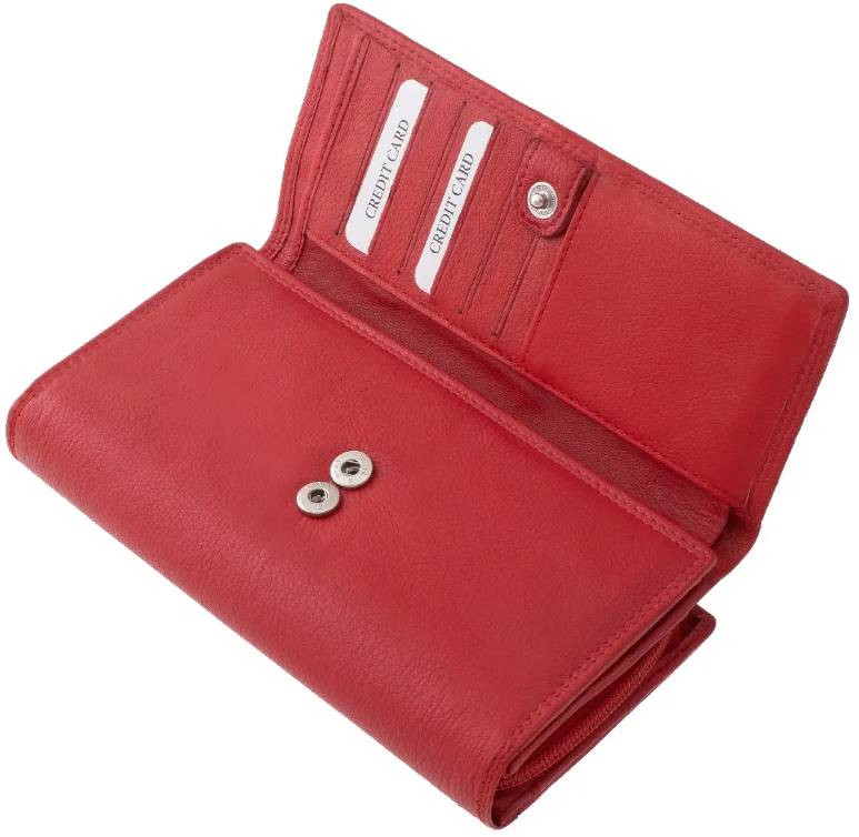 Peňaženka červenej farby s logom La Scala na veku. Vo vnútri sú tri vrecká na papierové peniaze a dvojdielny držiak na drobné s rámom, ako aj držiaky na karty a doklady. Na zadnej strane peňaženky bola navrhnutá ďalšia otvorená priehradka na doklady.