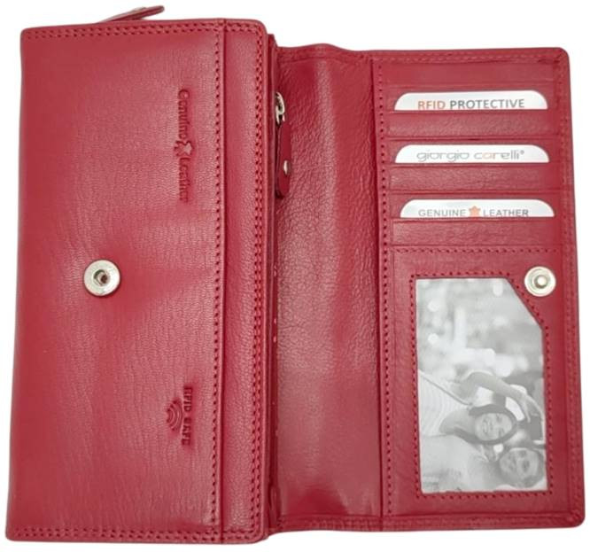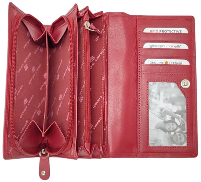 Dámska saténová červená kožená peňaženka Giorgio Carelli