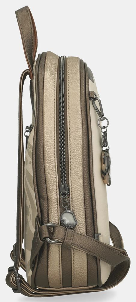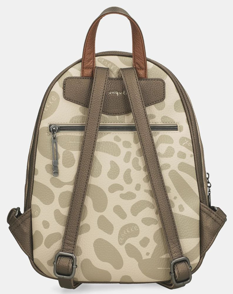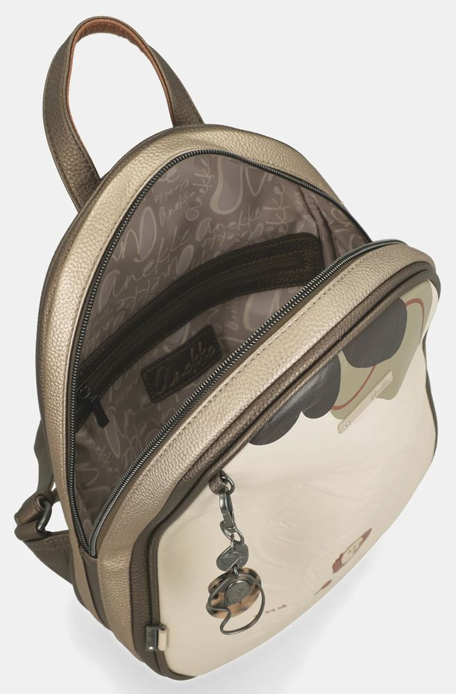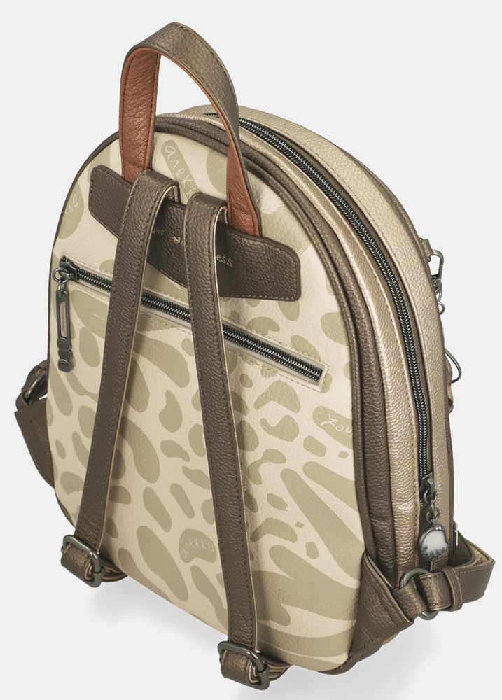 Dámsky batoh Gabol Sahara. Jeho vzhľad odráža eleganciu, rafinovanú sofistikovanosť a má špecifický štýl. Hlavná priehradka je uzatvárateľná na zips. Vnútri je malá priehradka na zips a dve menšie vrecká, z ktorých jedna dokonca pojme náš mobilný telefón. Zadná časť tašky je obohatená o extra vrecko na zips. Popruhy batohu sú ľahko nastaviteľné a jeho rukoväť zaisťuje pohodlné uchopenie.