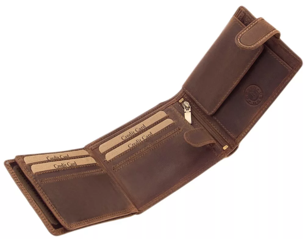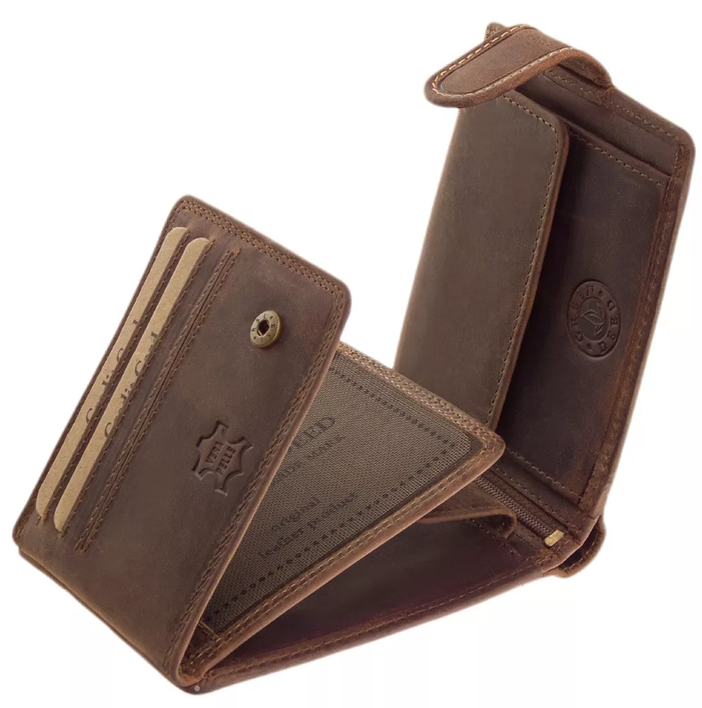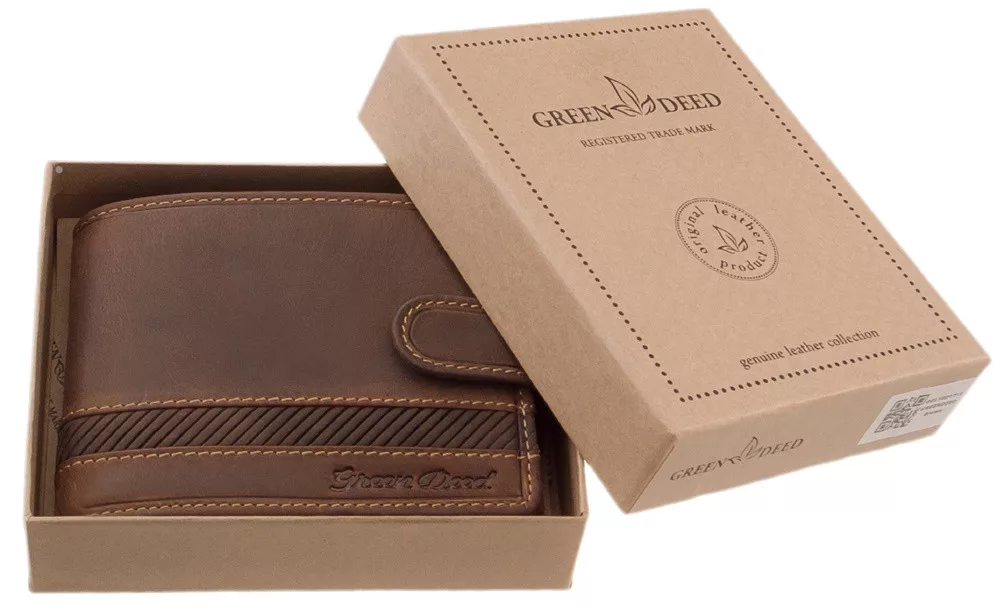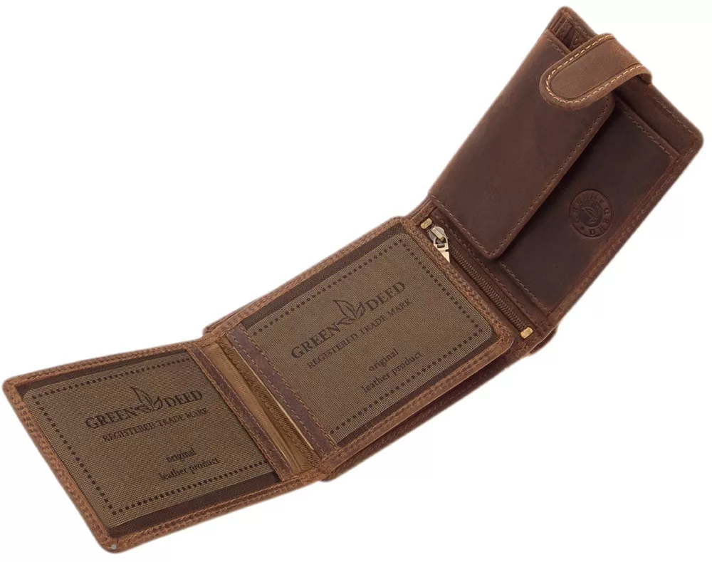 GreenDeed klipsová, pánska hnedá kožená peňaženka 12 × 9,5 cm