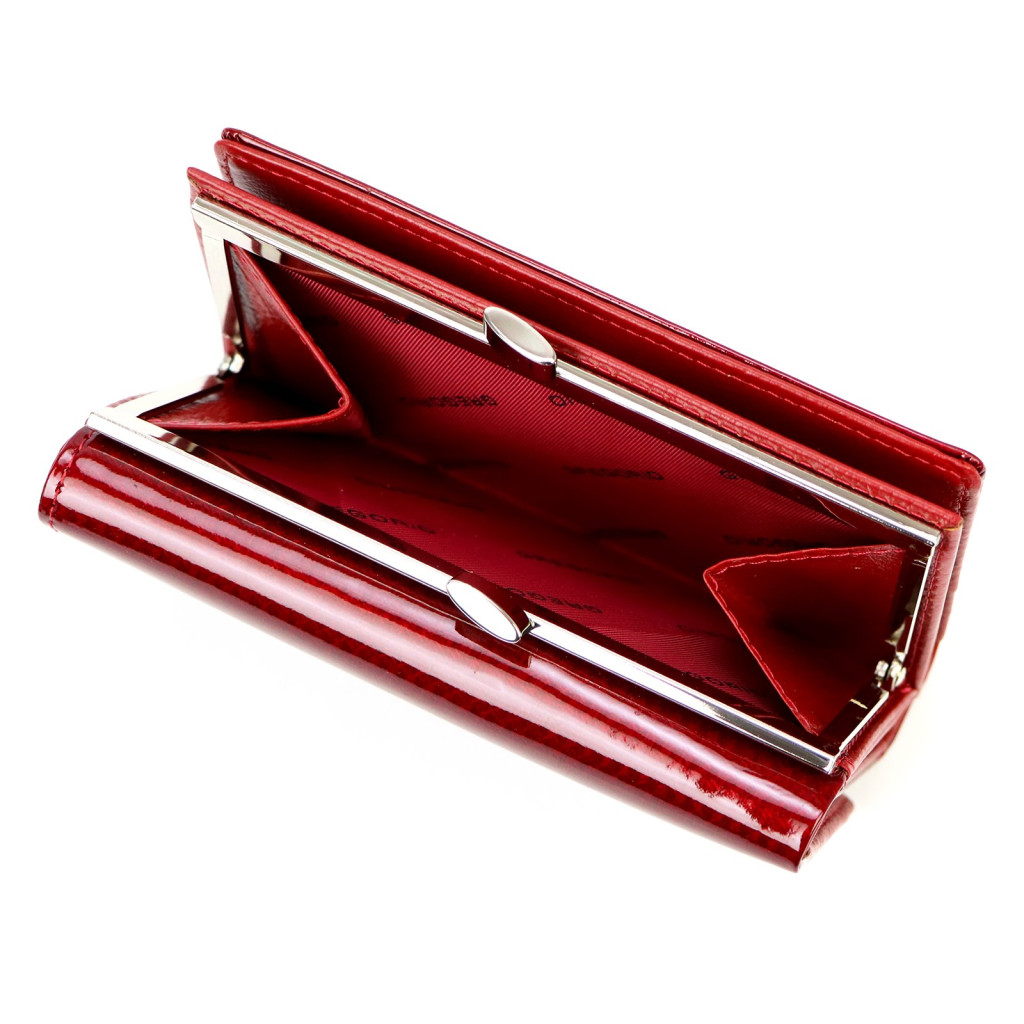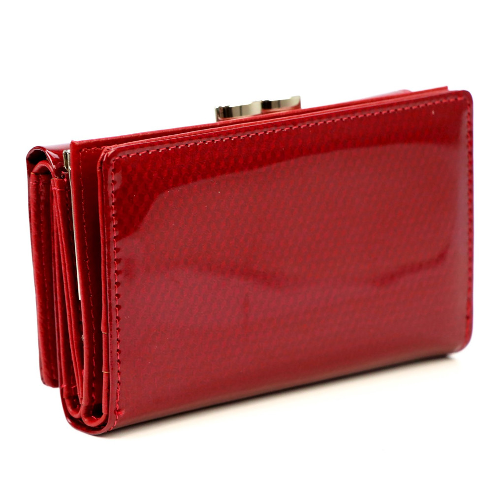 Średniej wielkości portfel damski, wykonany z najwyższej jakości naturalnej, włoskiej skóry licowej lakierowanej.
