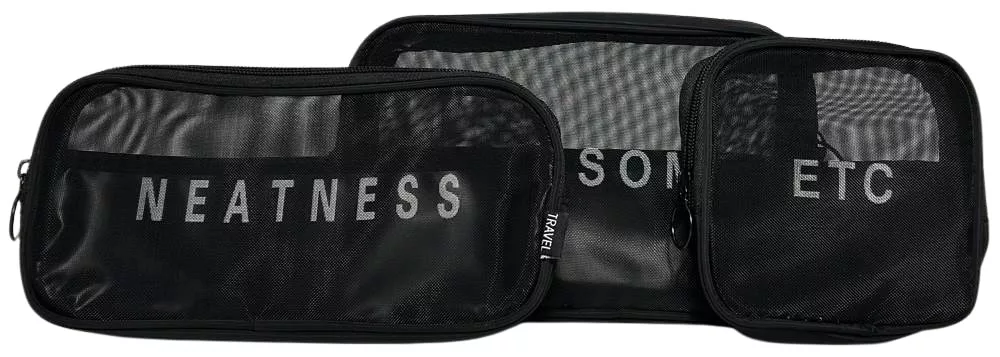 Vo vnútri je veľká priehradka a niekoľko menších sieťovaných vreciek, do ktorých môžete prakticky umiestniť toaletné potreby.