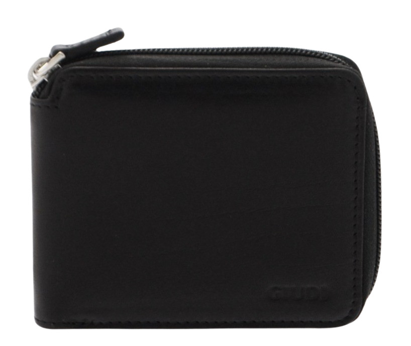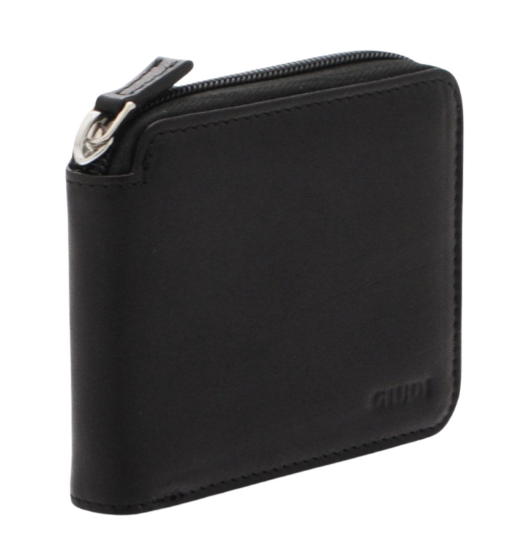 Peňaženka Giudi vyrobená z kvalitnej, hodvábnej kože. Má praktické usporiadanie a uzatvára sa na patent. Vo vnútri je malý mincovník na zips, dole otvorené vrecko, 4 držiaky na karty a 2 priehľadné vrecká na ľavej strane. Na zadnej stene je dvojitý držiak na bankovky. Kovové doplnky zlatej farby s potlačou názvu značky ho robia elegantným, s vyrazeným logom značky na prednej strane. Vnútro je vystlané elegantným umelým hodvábom s potlačou Giudi.