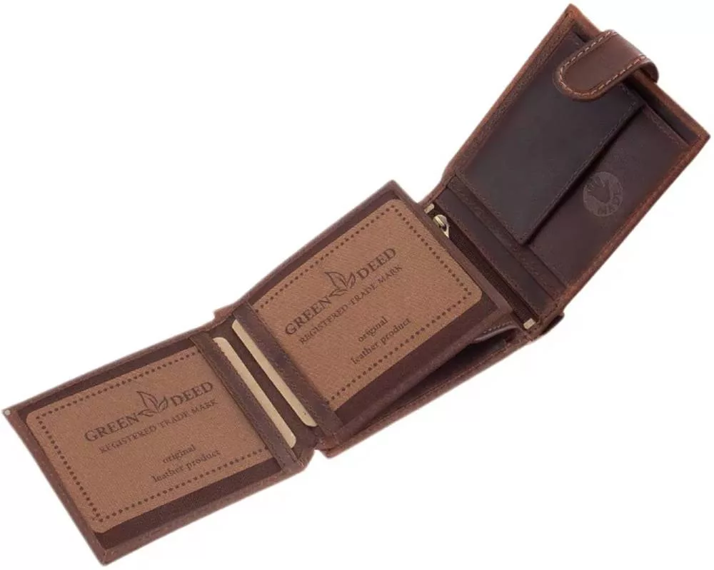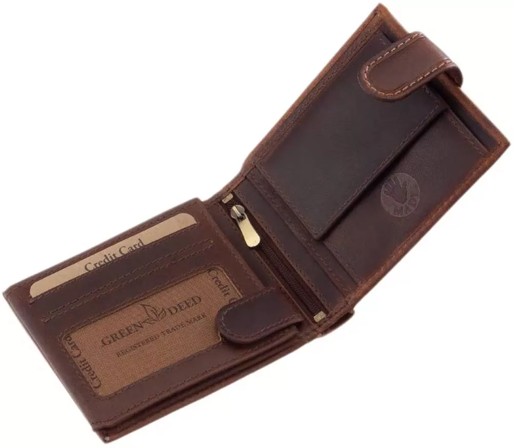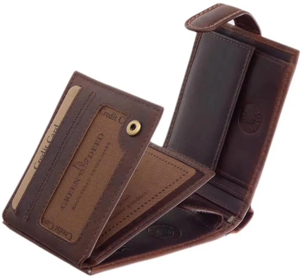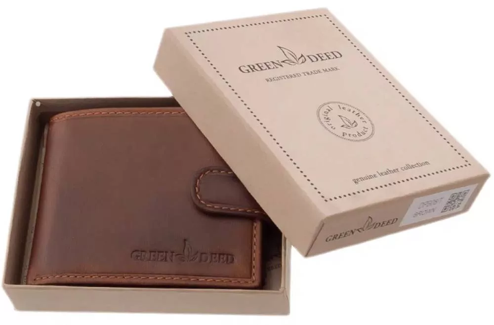 Pánska tmavohnedá kožená peňaženka GreenDeed v darčekovej krabičke 12 x 9,5 cm