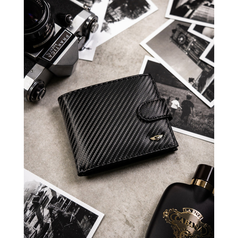 Najvyššia kvalita a precízna práca Peňaženka je vyrobená z kvalitnej prírodnej kože, potiahnutá vrstvou, ktorá zvonka silne pripomína uhlíkové vlákna. Model má vonkajšiu sponu, ktorá sa zapína.