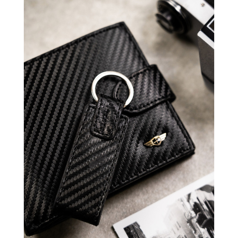 Kompletne so štýlovým krúžkom na kľúče |Prívesok na kľúče zdobí vaše kľúče. Podobne ako peňaženka je vyrobená v štýle uhlíkových vlákien