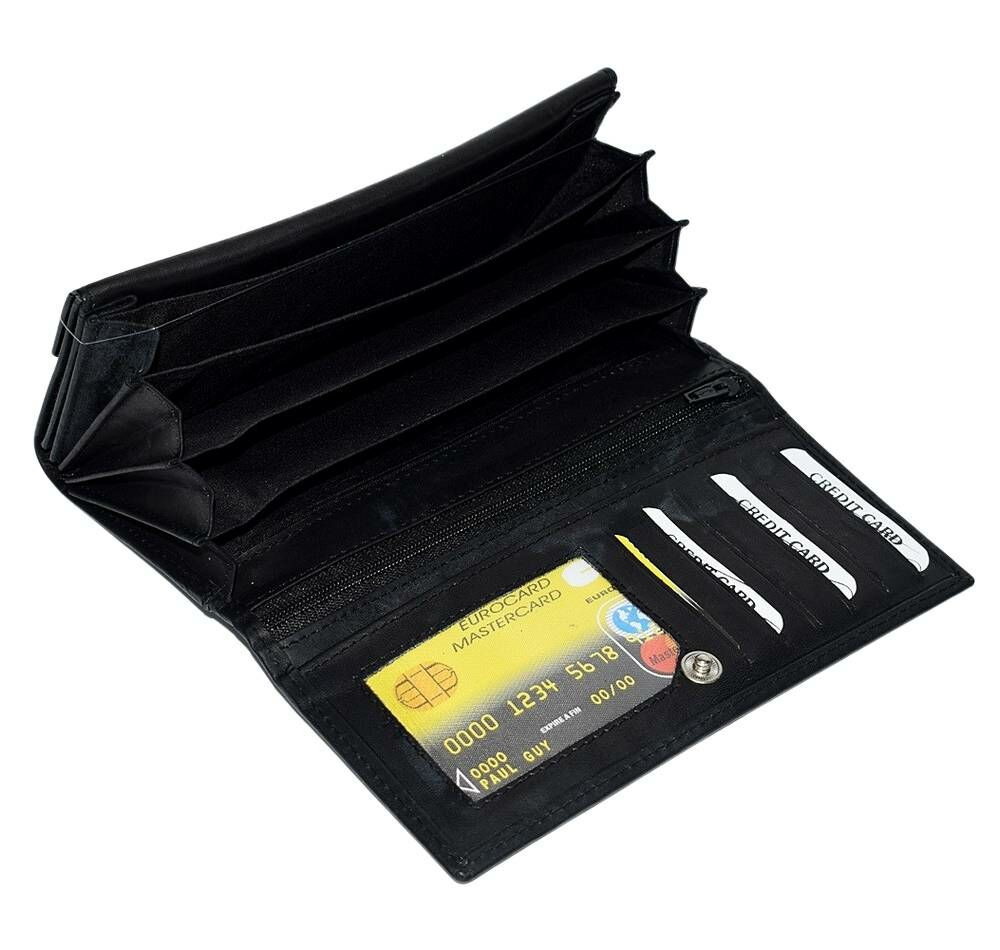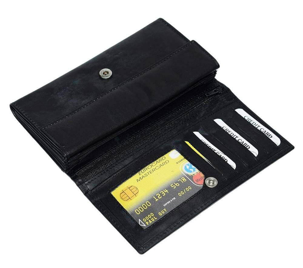 Dámska čierna kožená peňaženka s držiakmi na karty a spisy