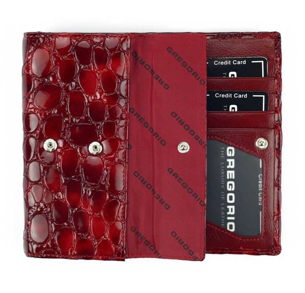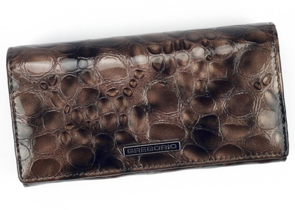 Dámska hnedá lakovaná peňaženka Gregorio s kroko vzorom 16,5 × 9 cm