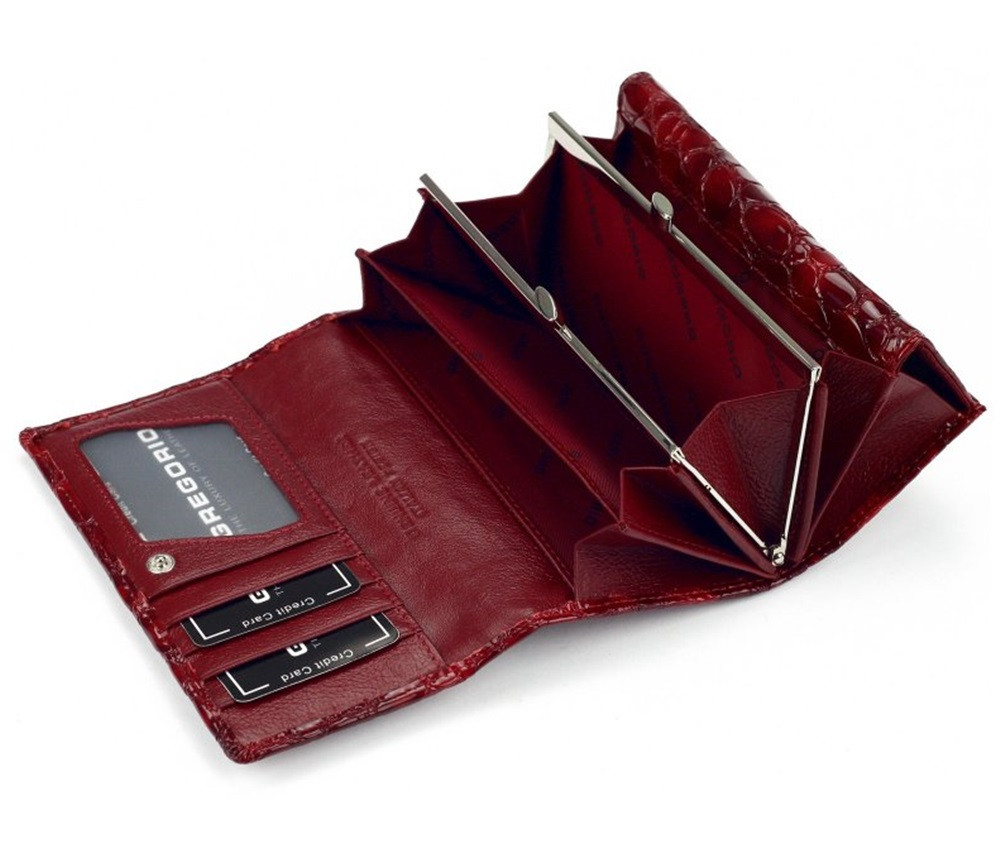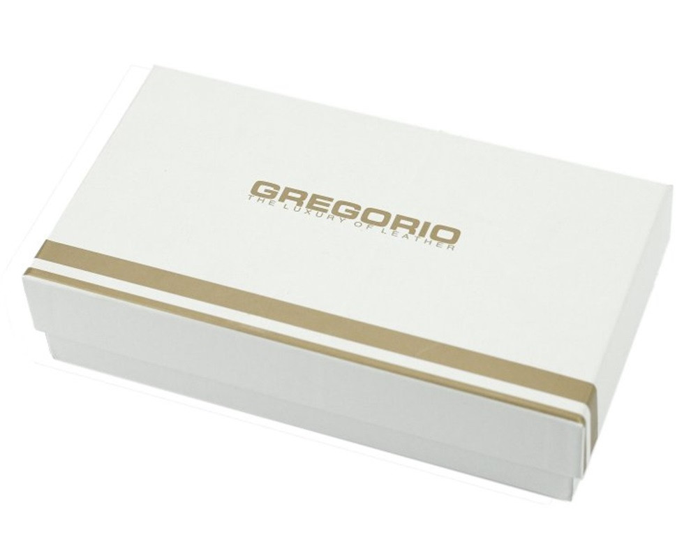 Predná strana peňaženku zdobí kovový prívesok Gregorio.